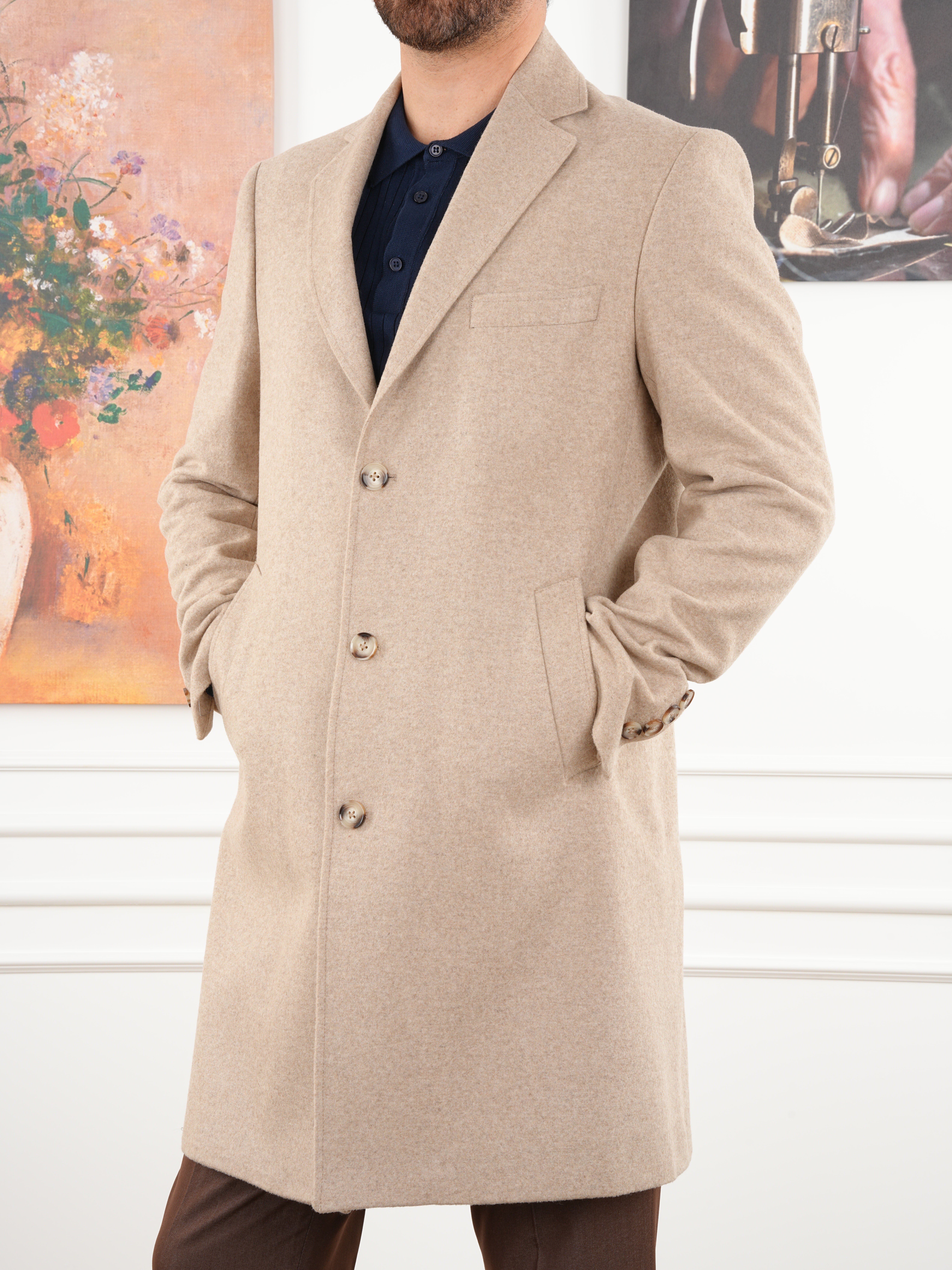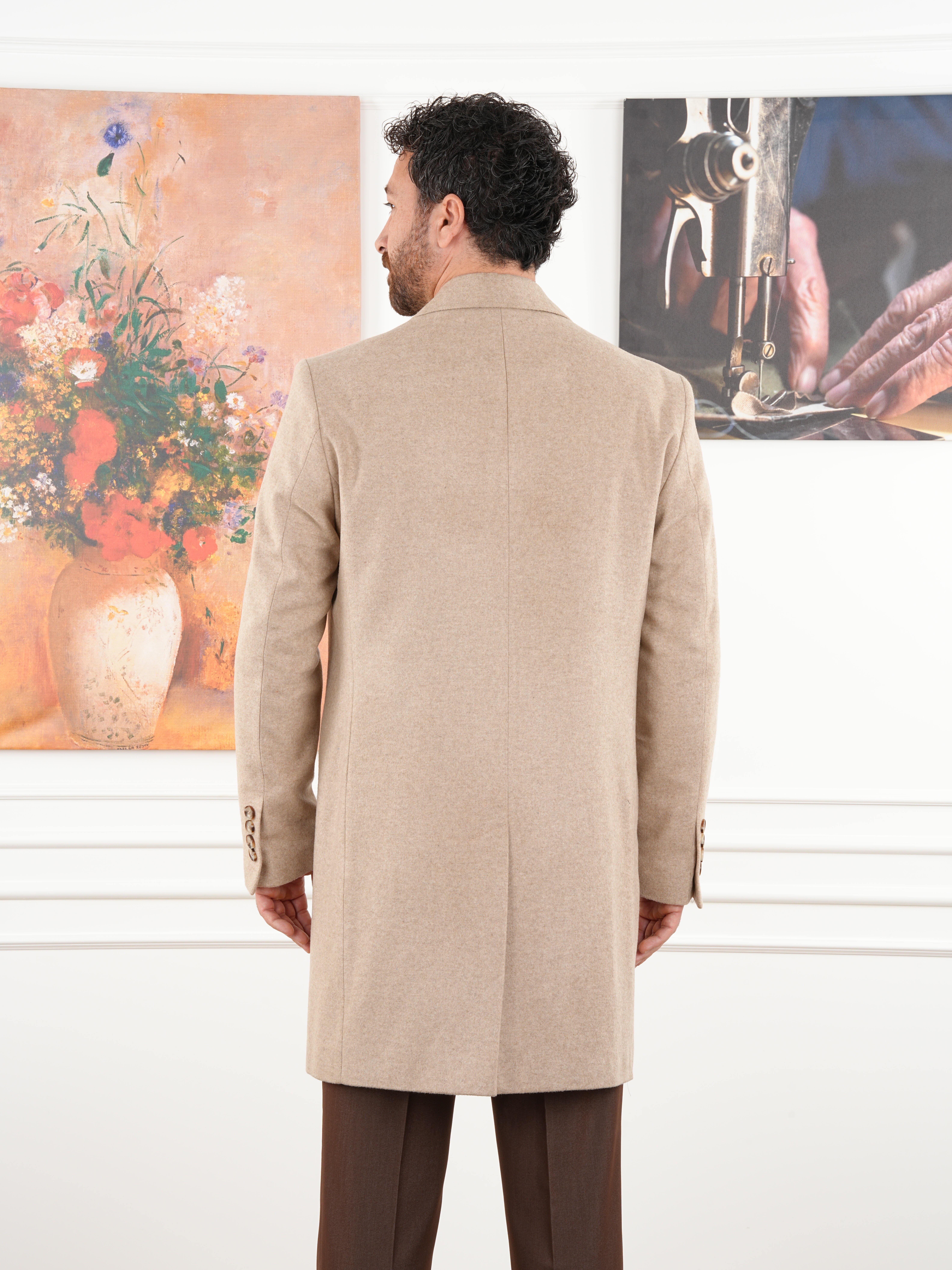 Erkek Premium İtalyan Stil Slim Fit Mono Yaka Kaşe Kaban - Krem (XPRZK1000-06)