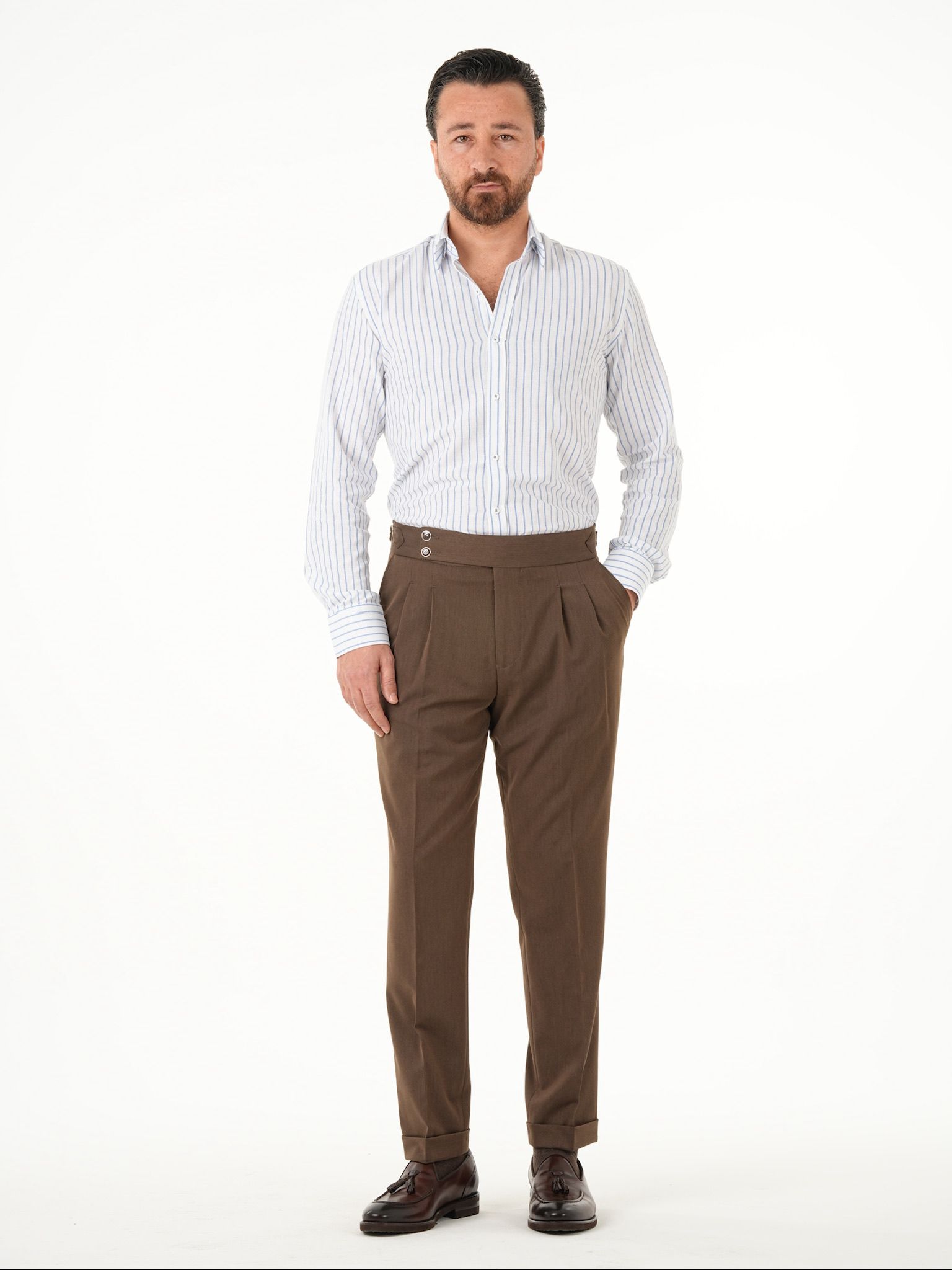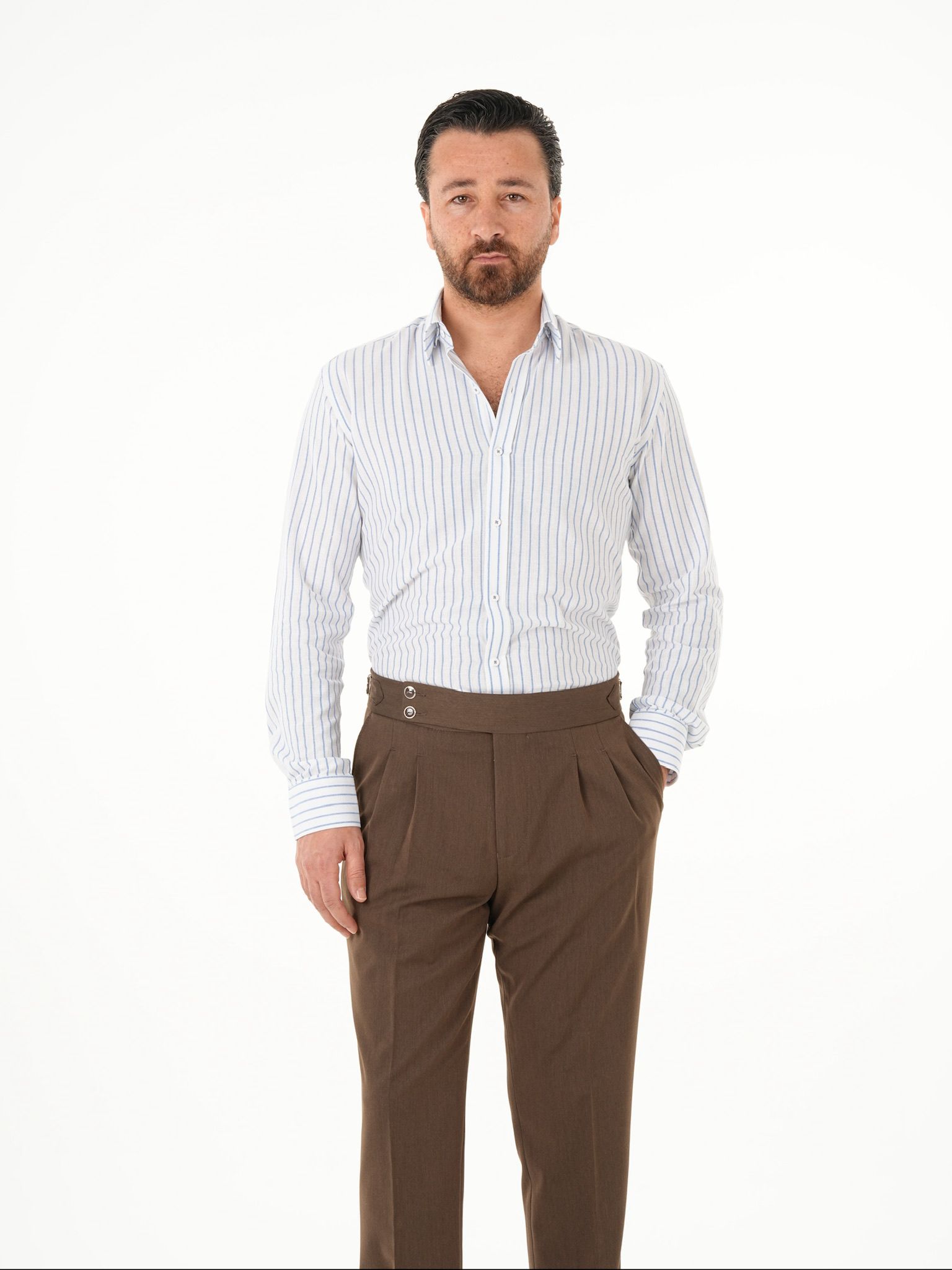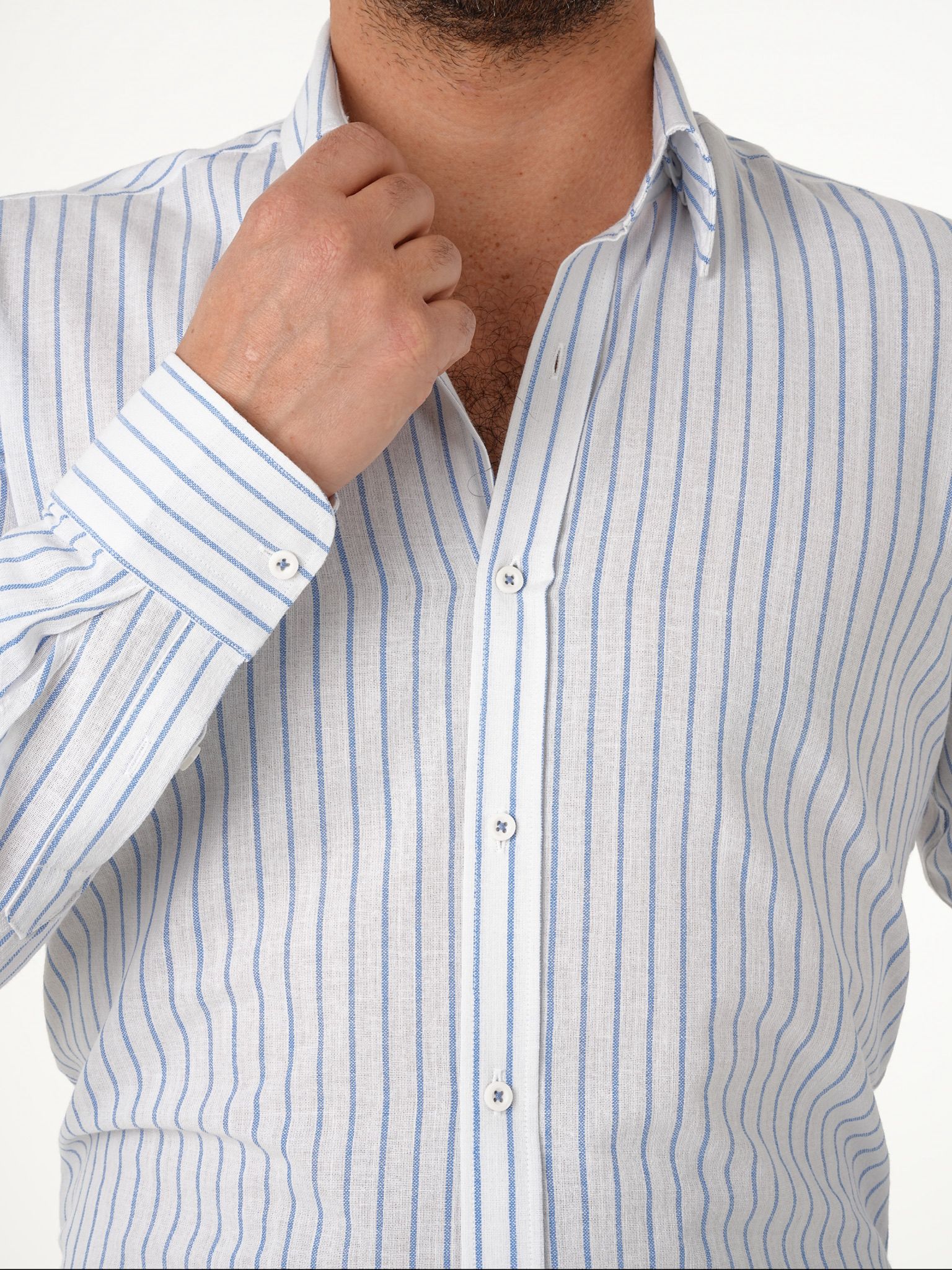 Erkek Premium Regular Fit Çizgili Keten Gömlek - Buz Mavisi (XPRZG2030-11)