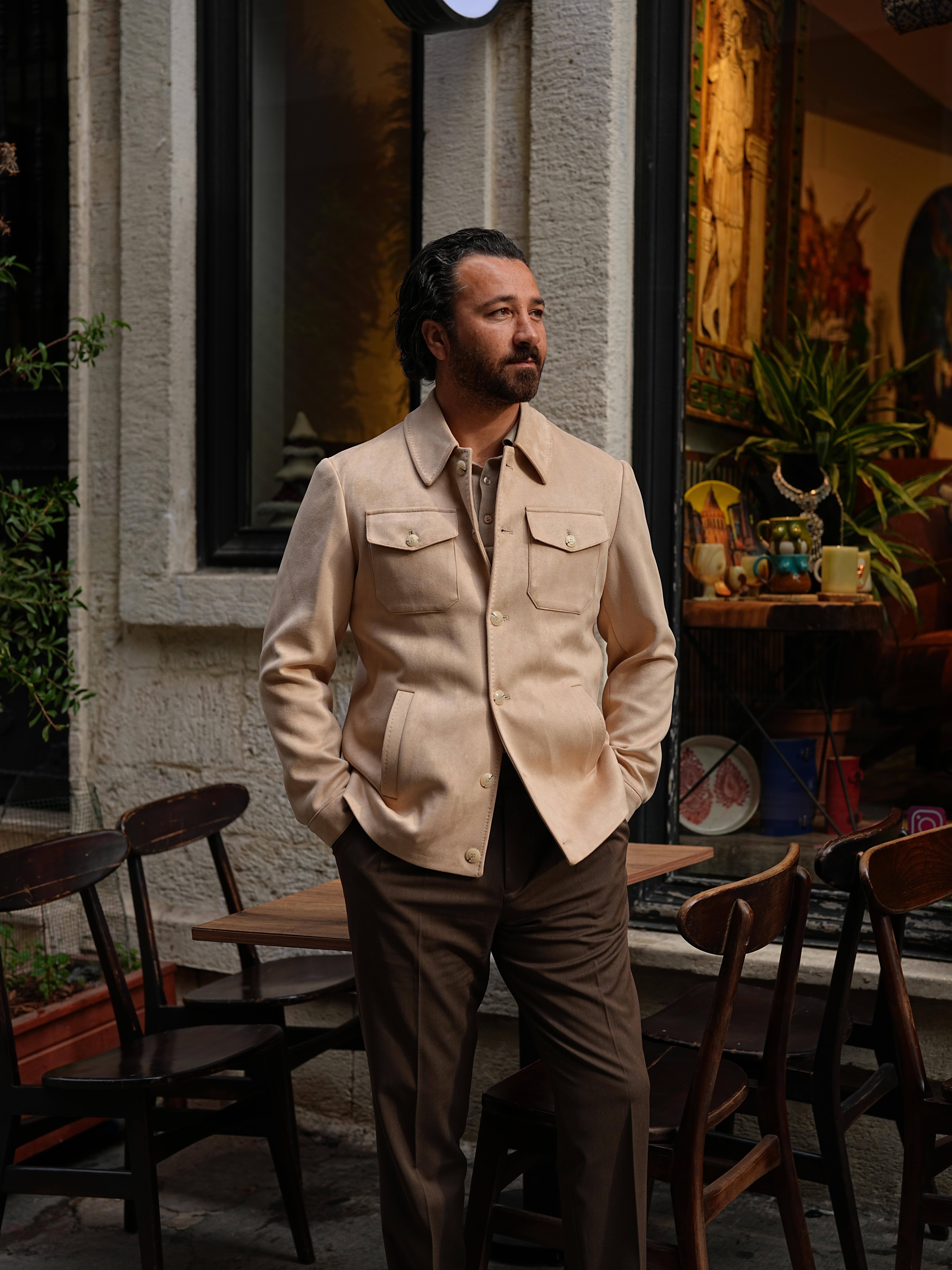 Erkek Slim Fit Cepli Nubuk Ceket - Bej (XPRZCOM8660-16)