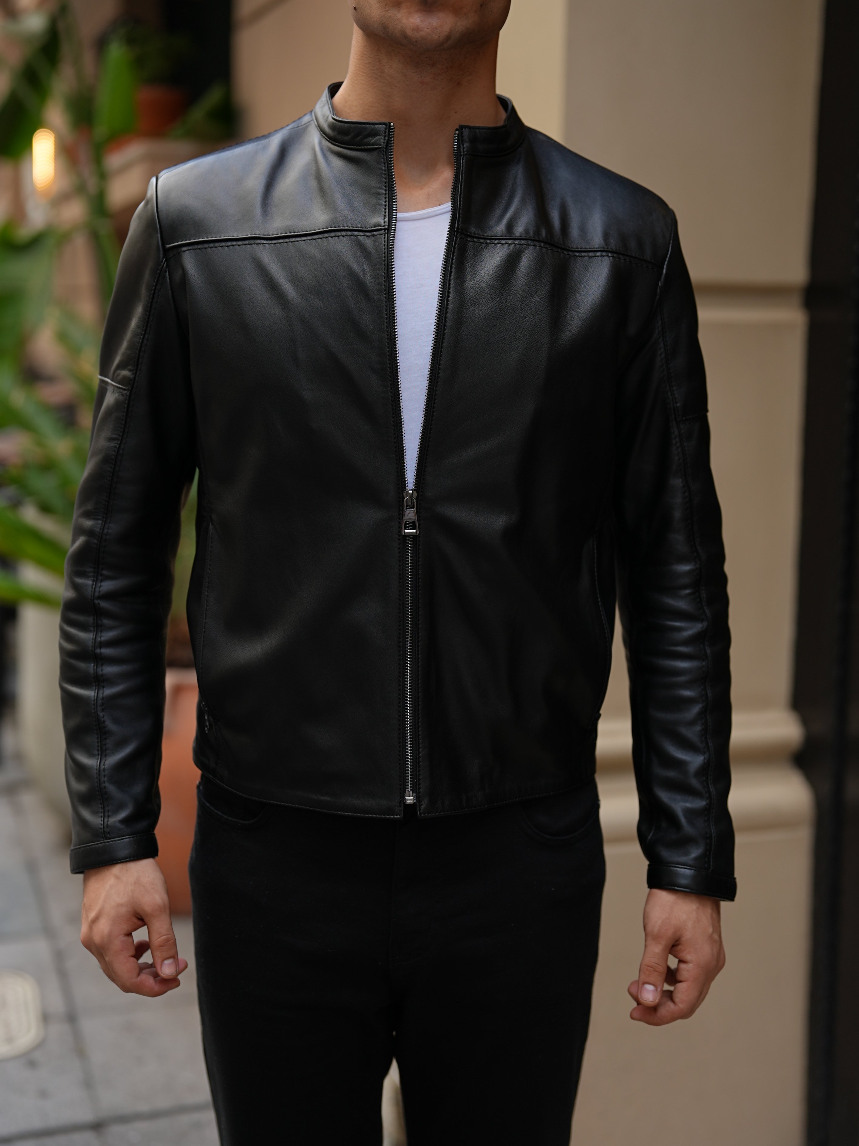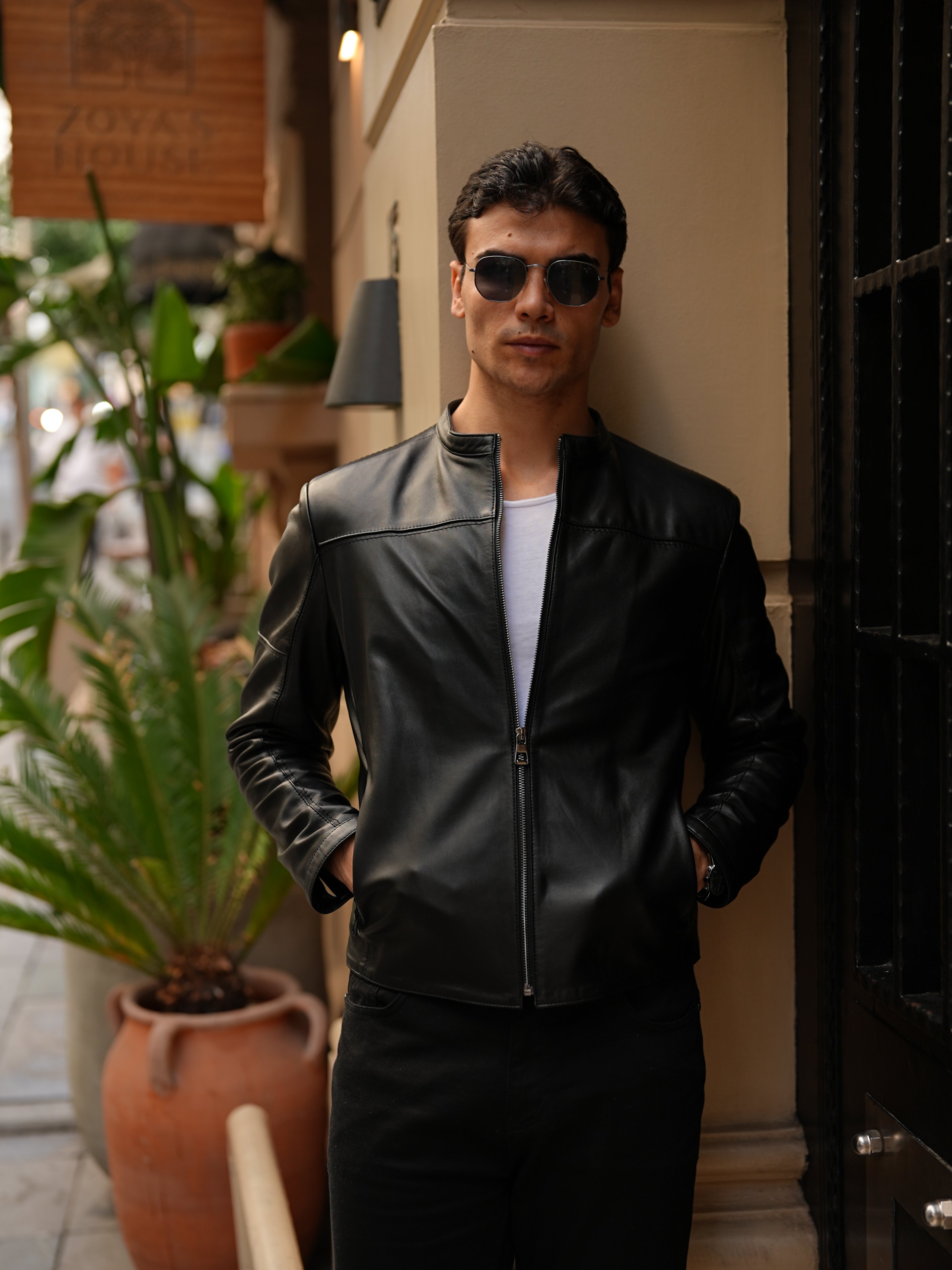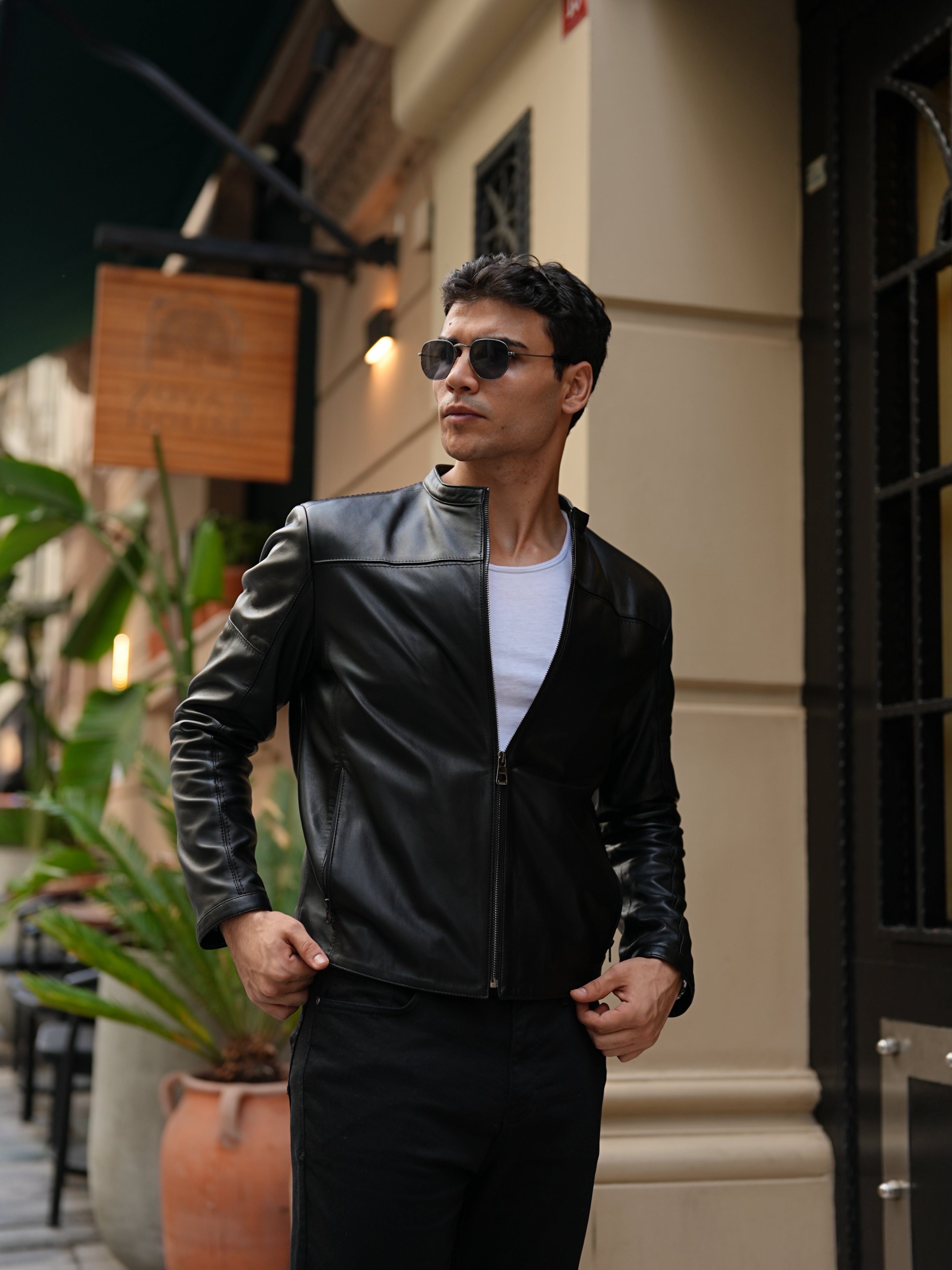 Erkek Standart Fit %100 Hakiki Kuzu Deri Mont-Siyah - Siyah (LNTD7512-001)
