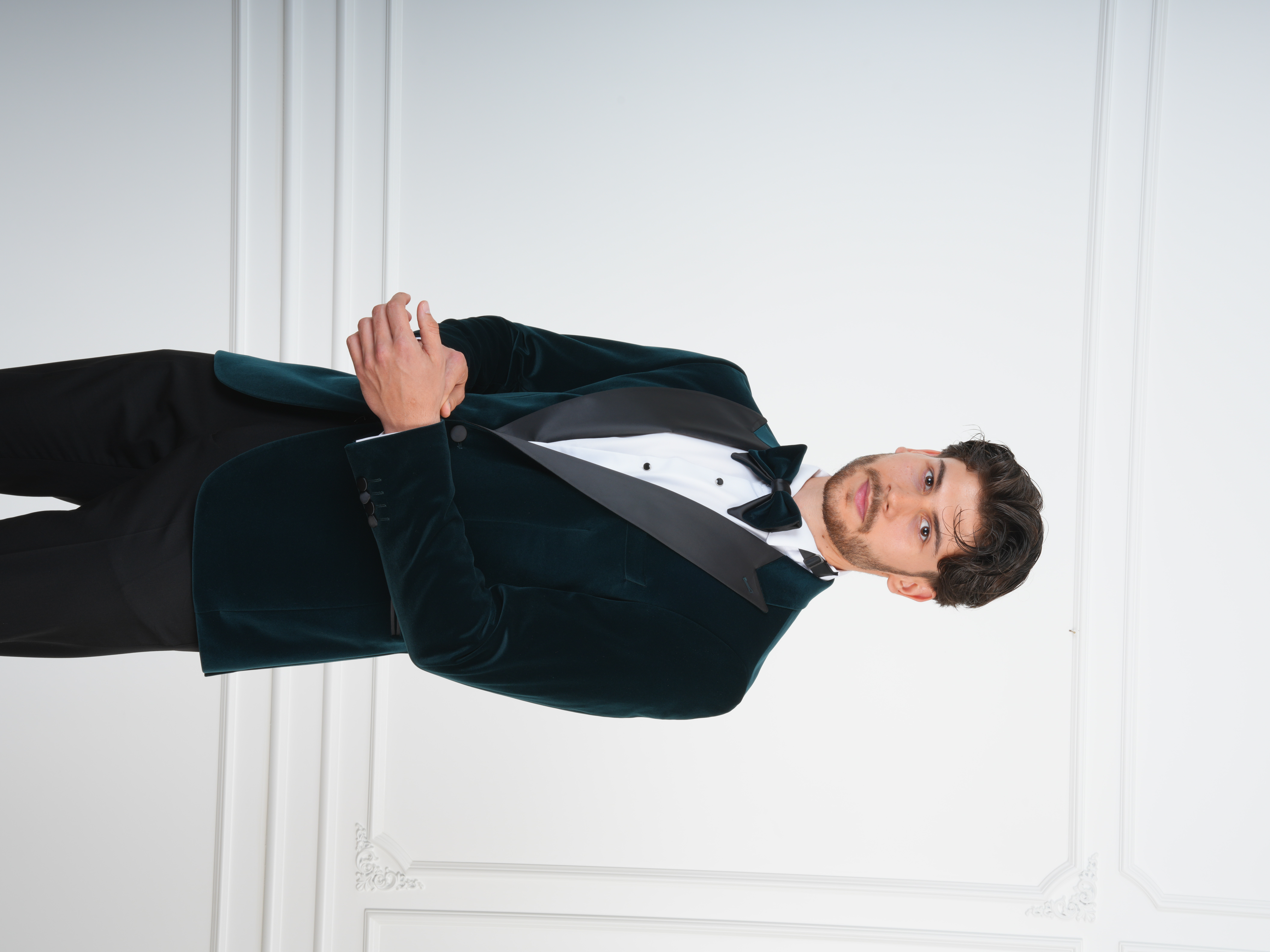 Erkek Premium Kadife Smokin Damatlık İtalyan Stil Slim Fit Ceket Pantolon Papyon - Haki (XPRZCOM2435-04)