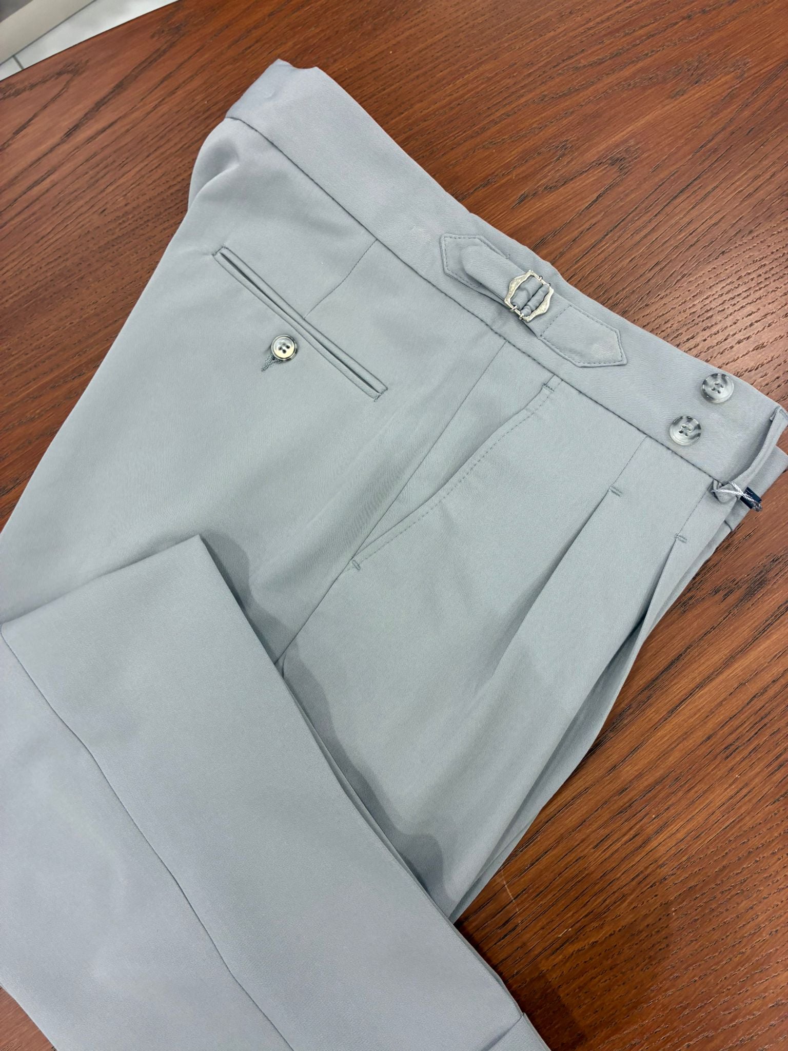 Erkek Regular Fit Yüksek Bel Piliseli Tokalı Kumaş Pantolon - Açık gri (XPRZP2850-100)
