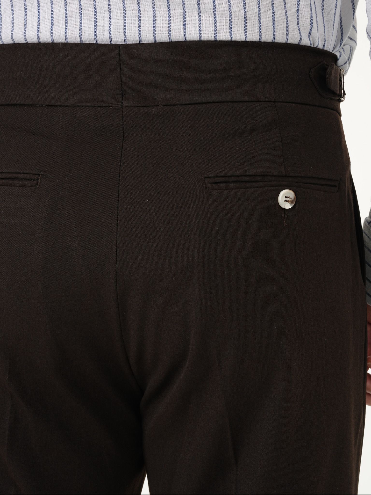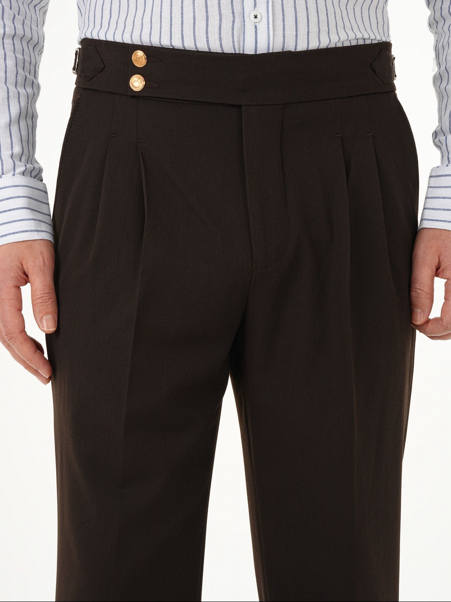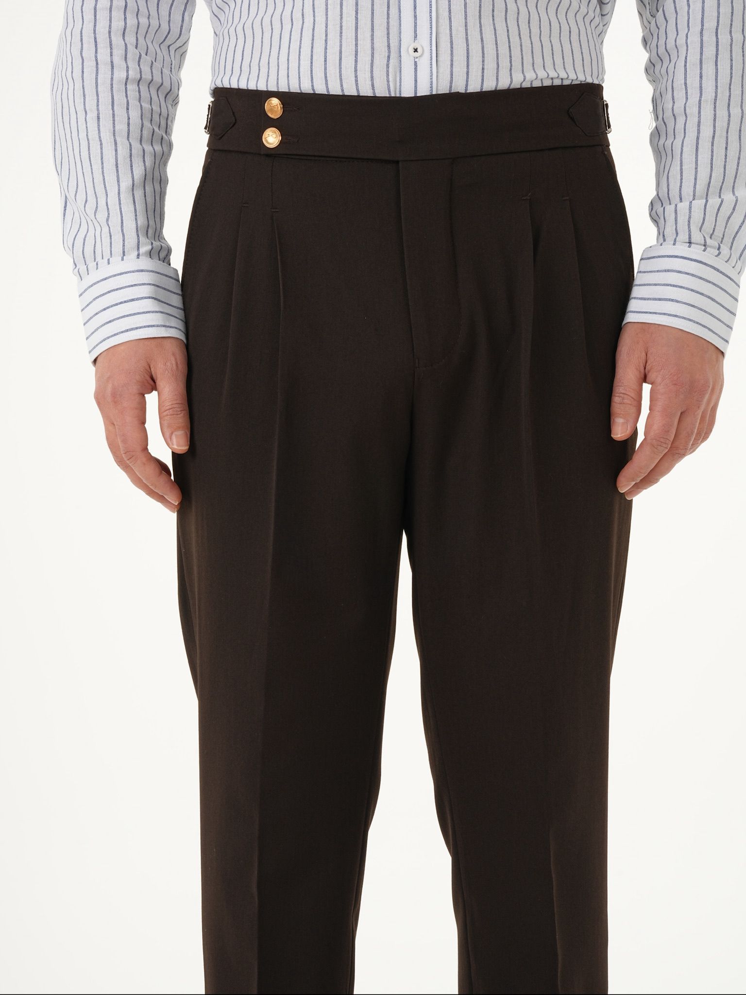 Erkek Regular Fit Yüksek Bel Piliseli Tokalı Kumaş Pantolon - Acı Kahve (XPRZP2856-15)