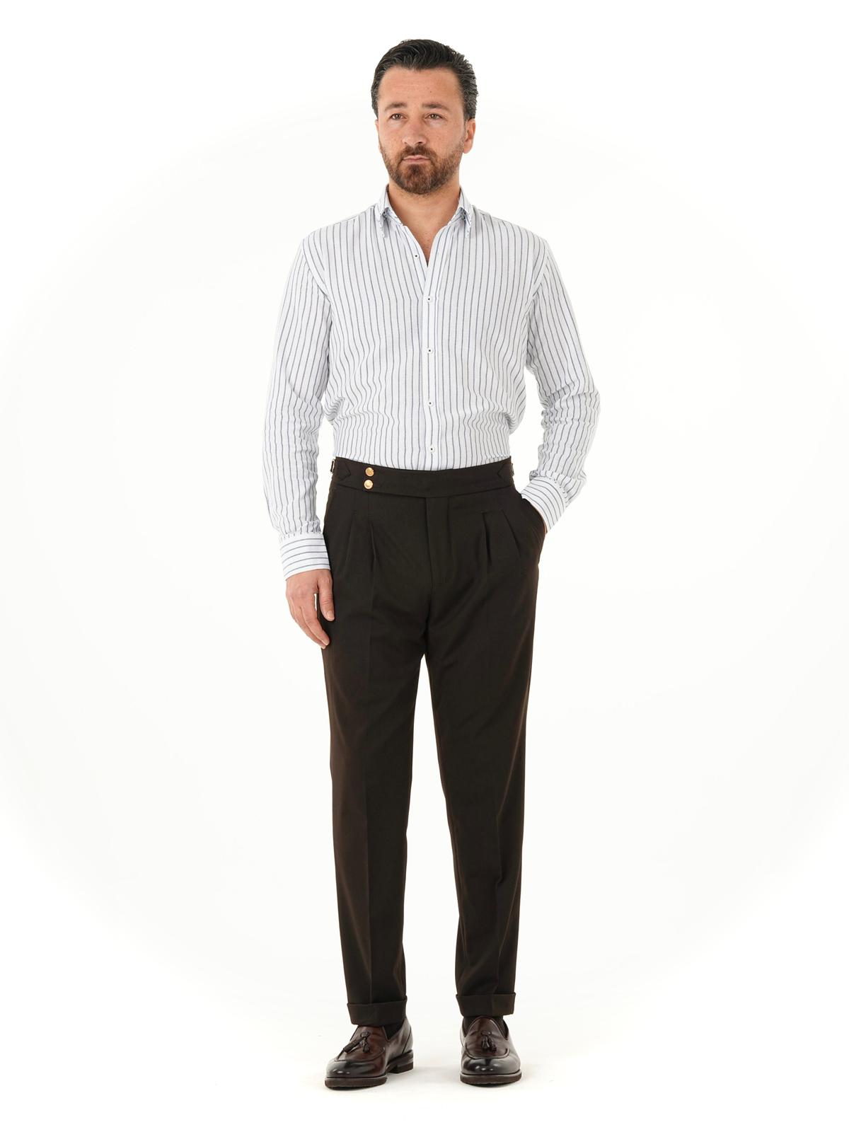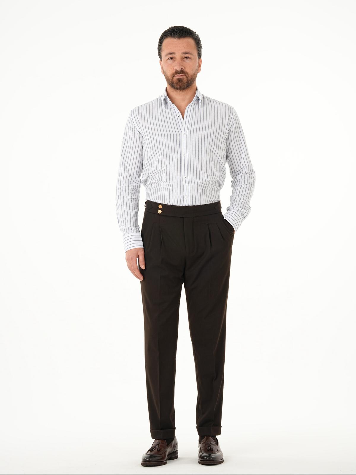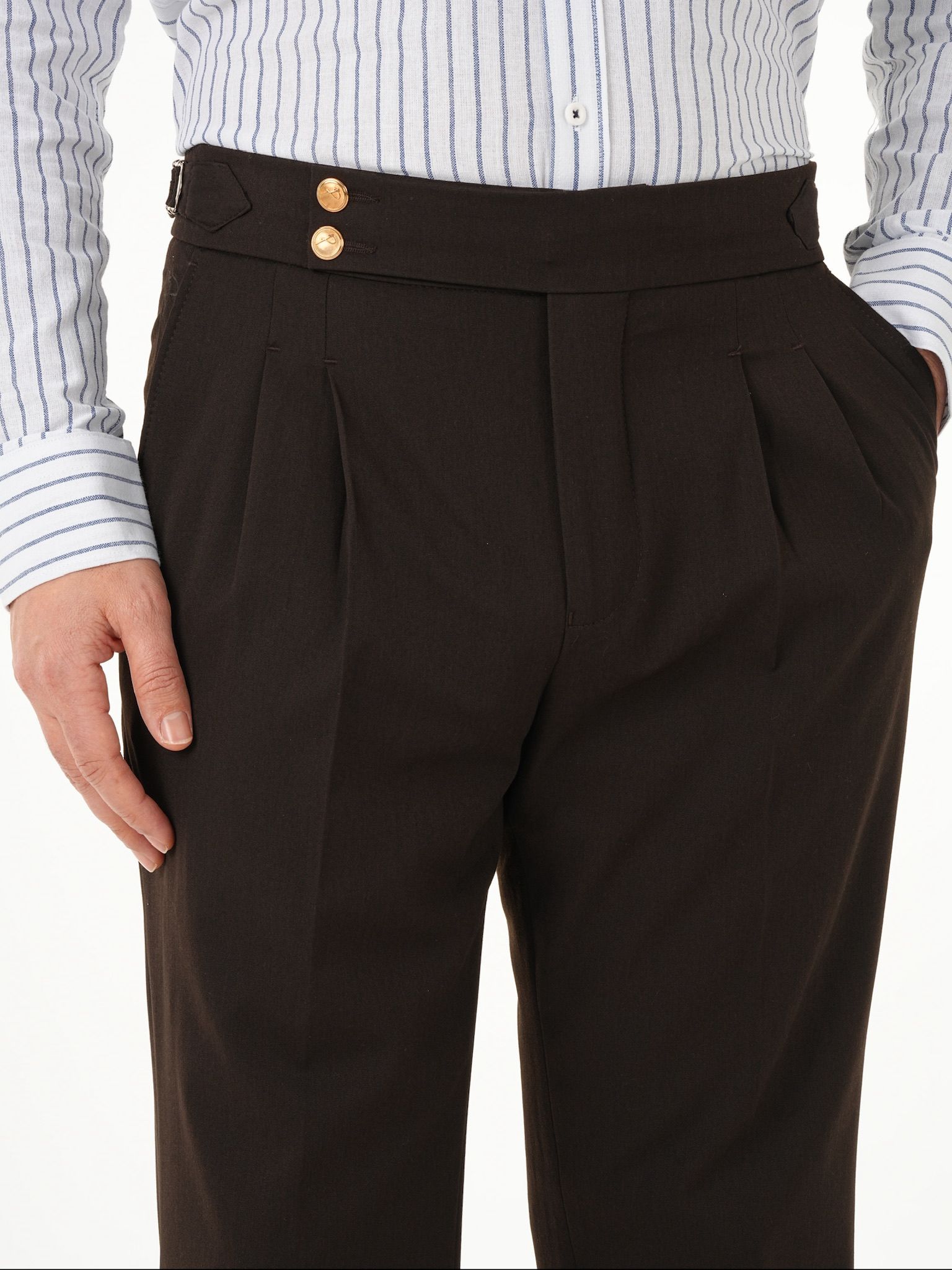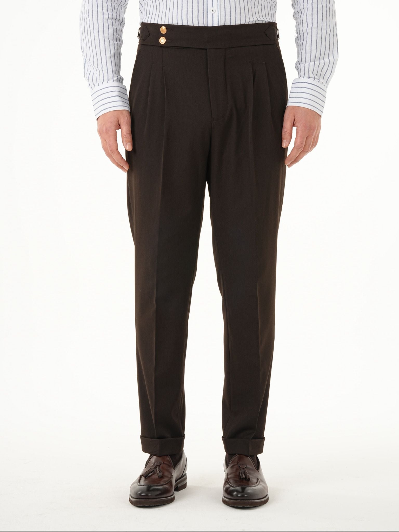 Erkek Regular Fit Yüksek Bel Piliseli Tokalı Kumaş Pantolon - Acı Kahve (XPRZP2856-15)