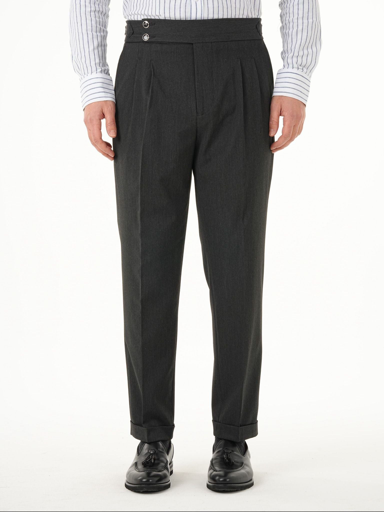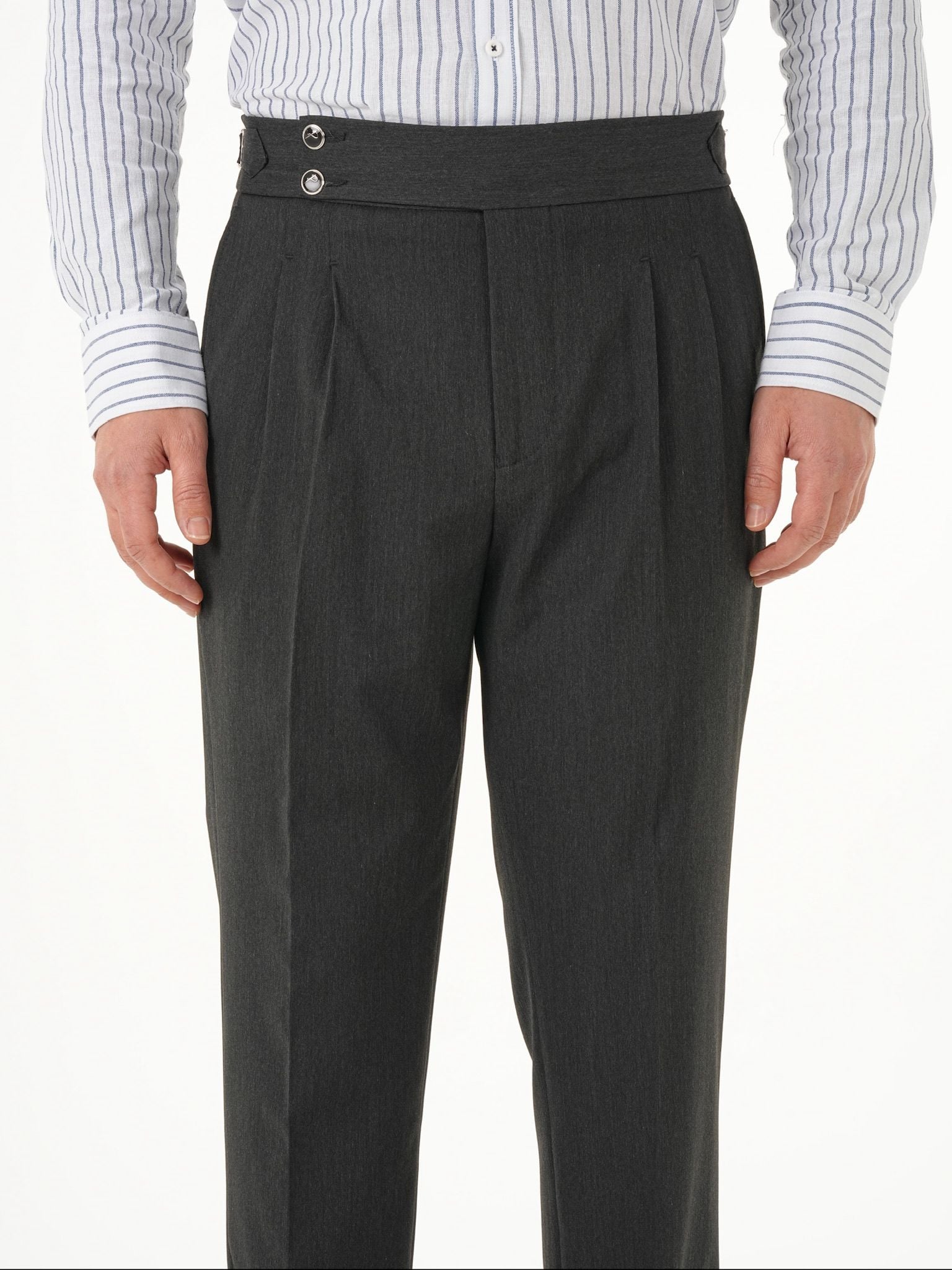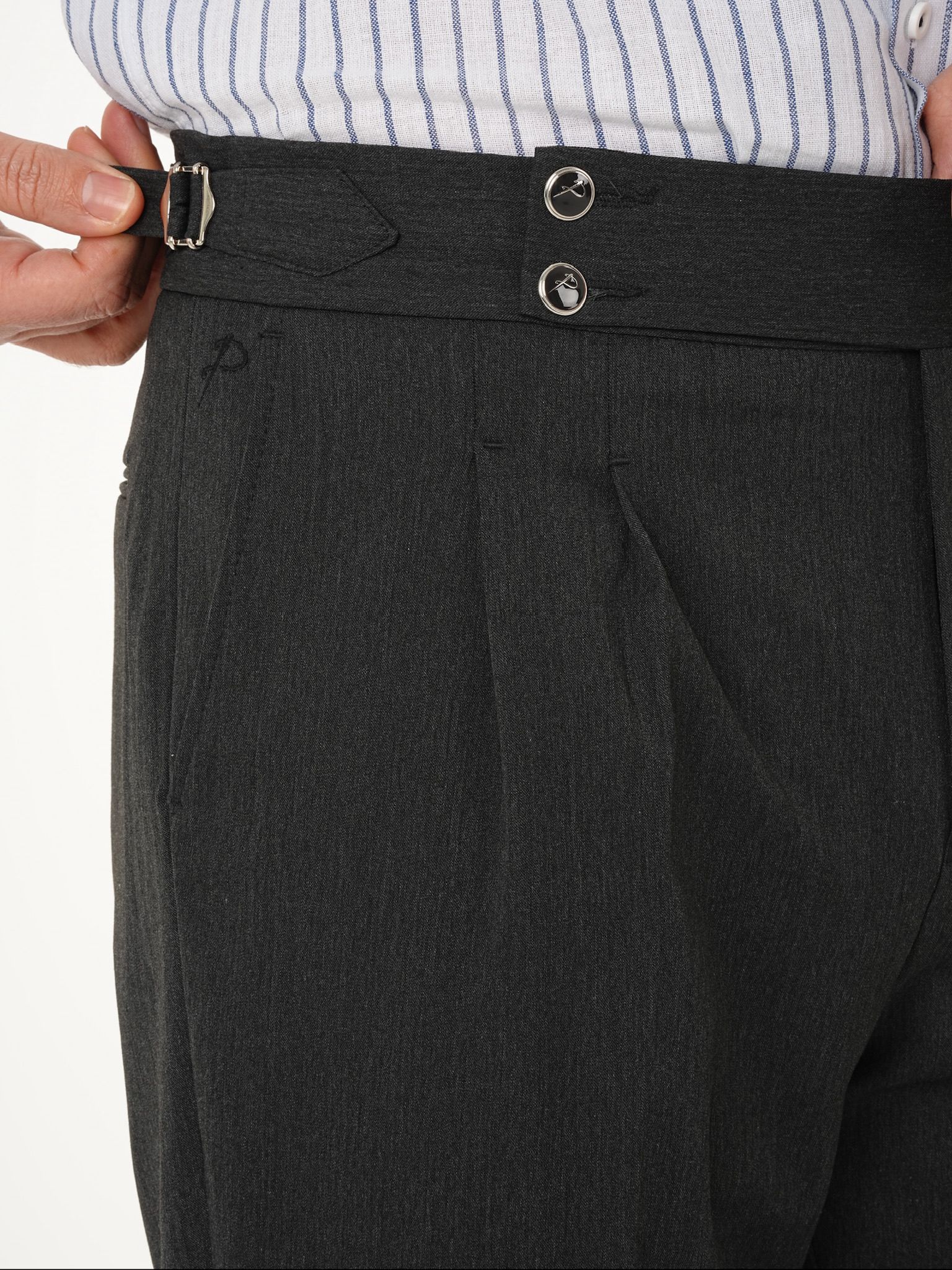 Erkek Regular Fit Yüksek Bel Piliseli Tokalı Kumaş Pantolon - Antrasit (XPRZP2854-27)