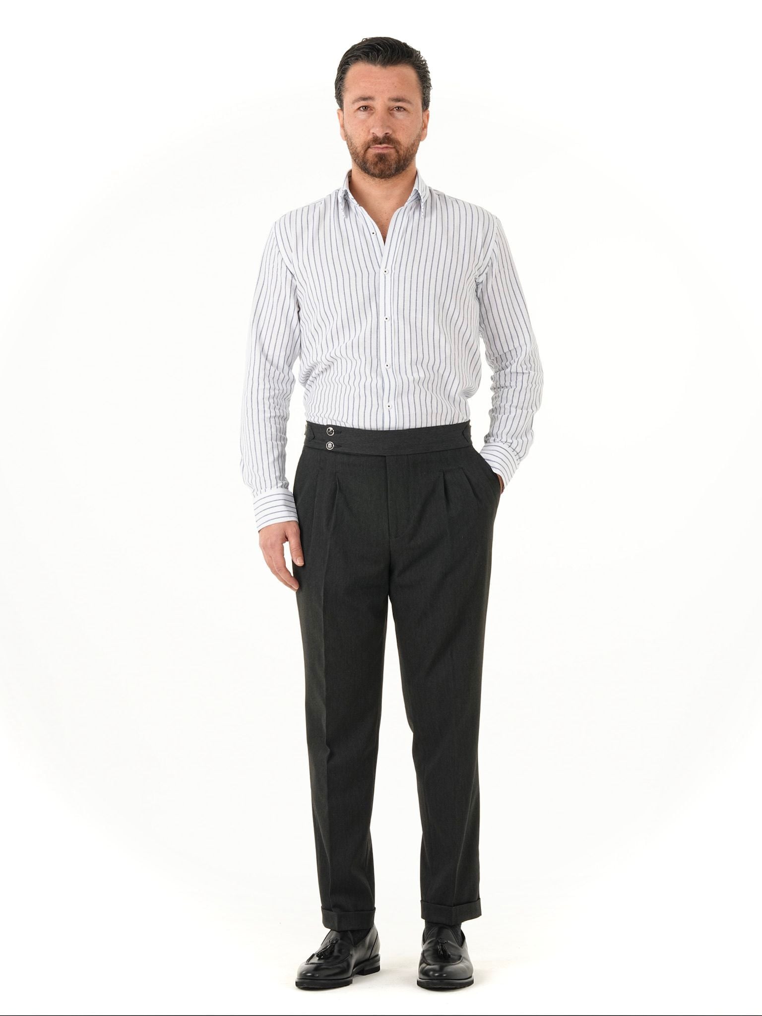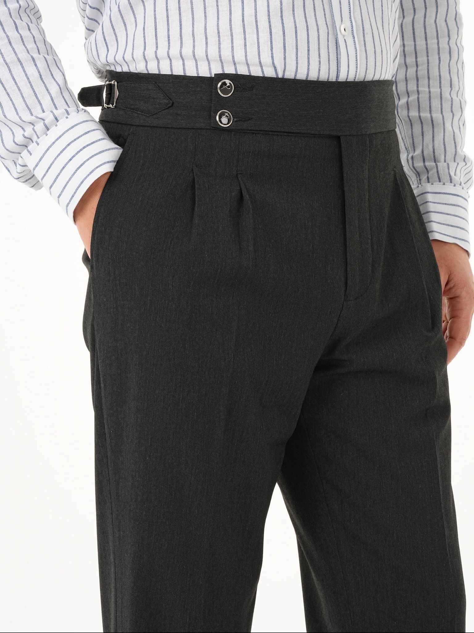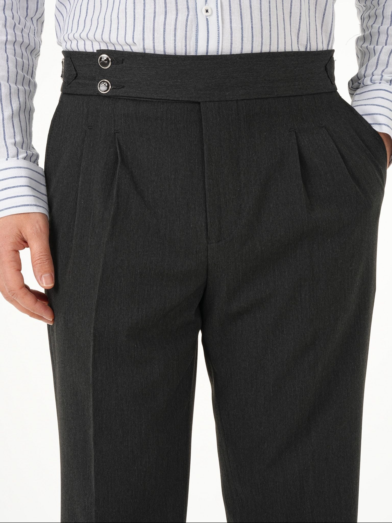 Erkek Regular Fit Yüksek Bel Piliseli Tokalı Kumaş Pantolon - Antrasit (XPRZP2854-27)