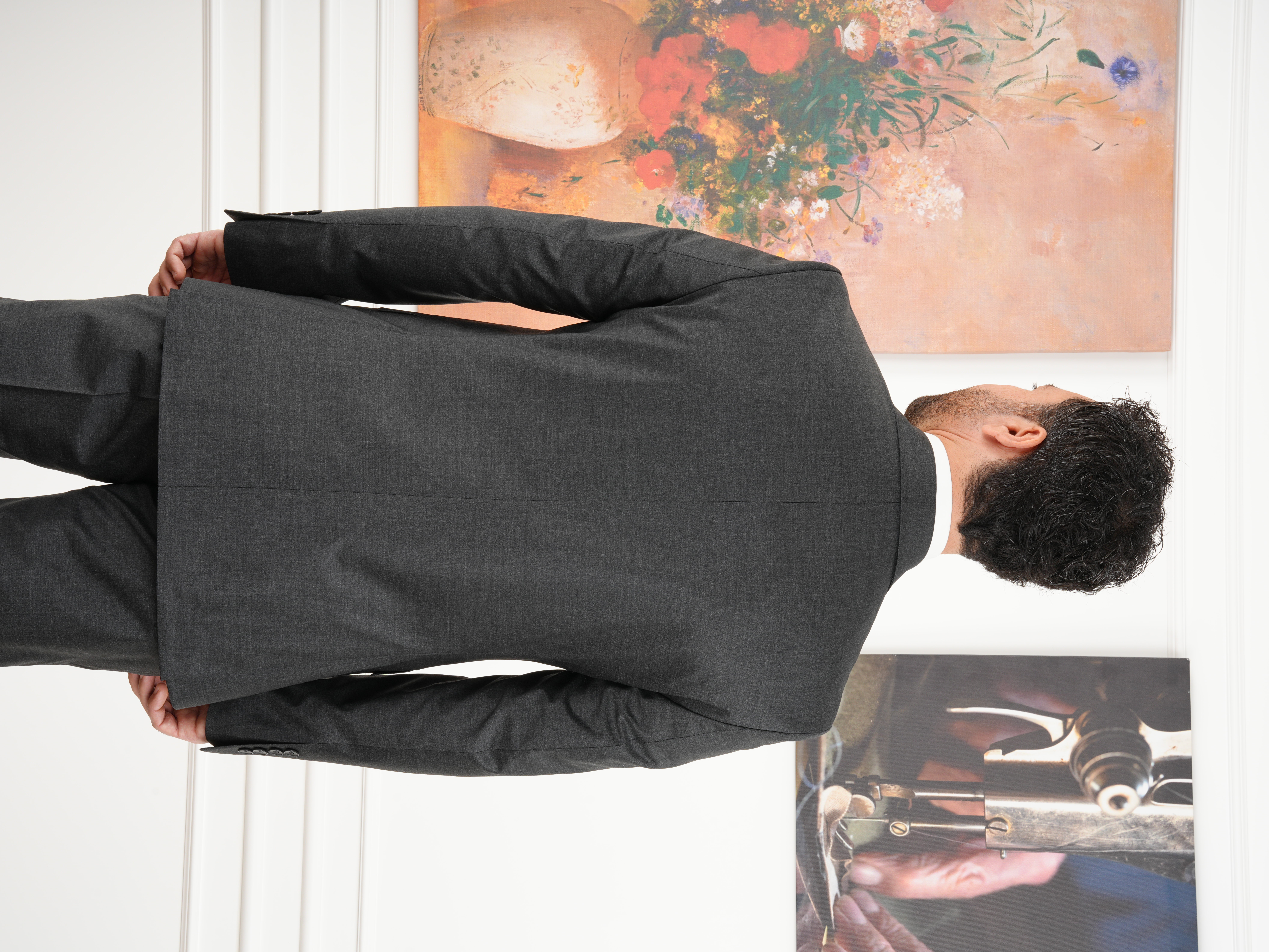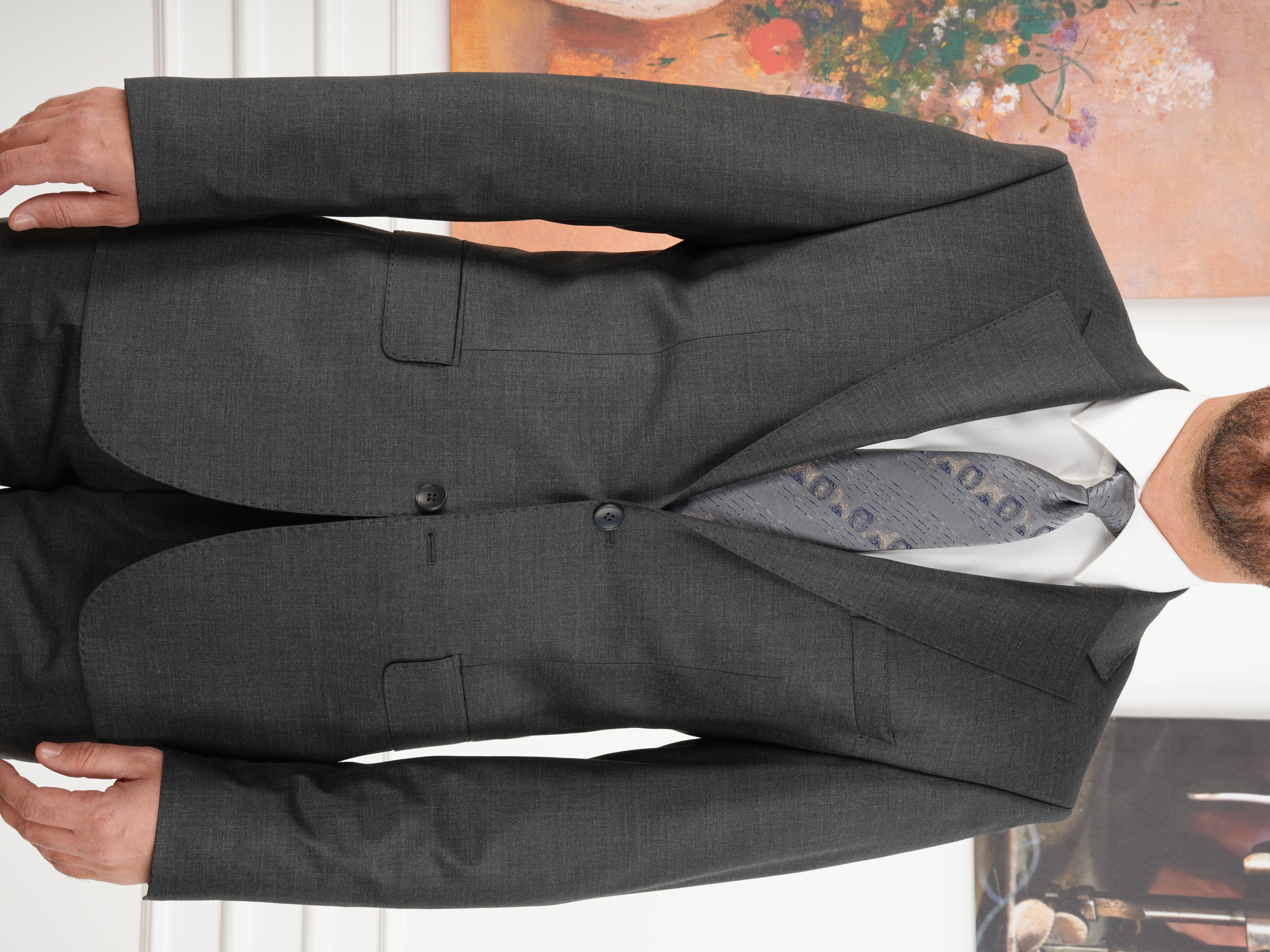 Erkek Regular İtalyan Stil Yünlü Mono Yaka Takım Elbise Ceket Pantolon - Antrasit (XPRZCOM8410-27)