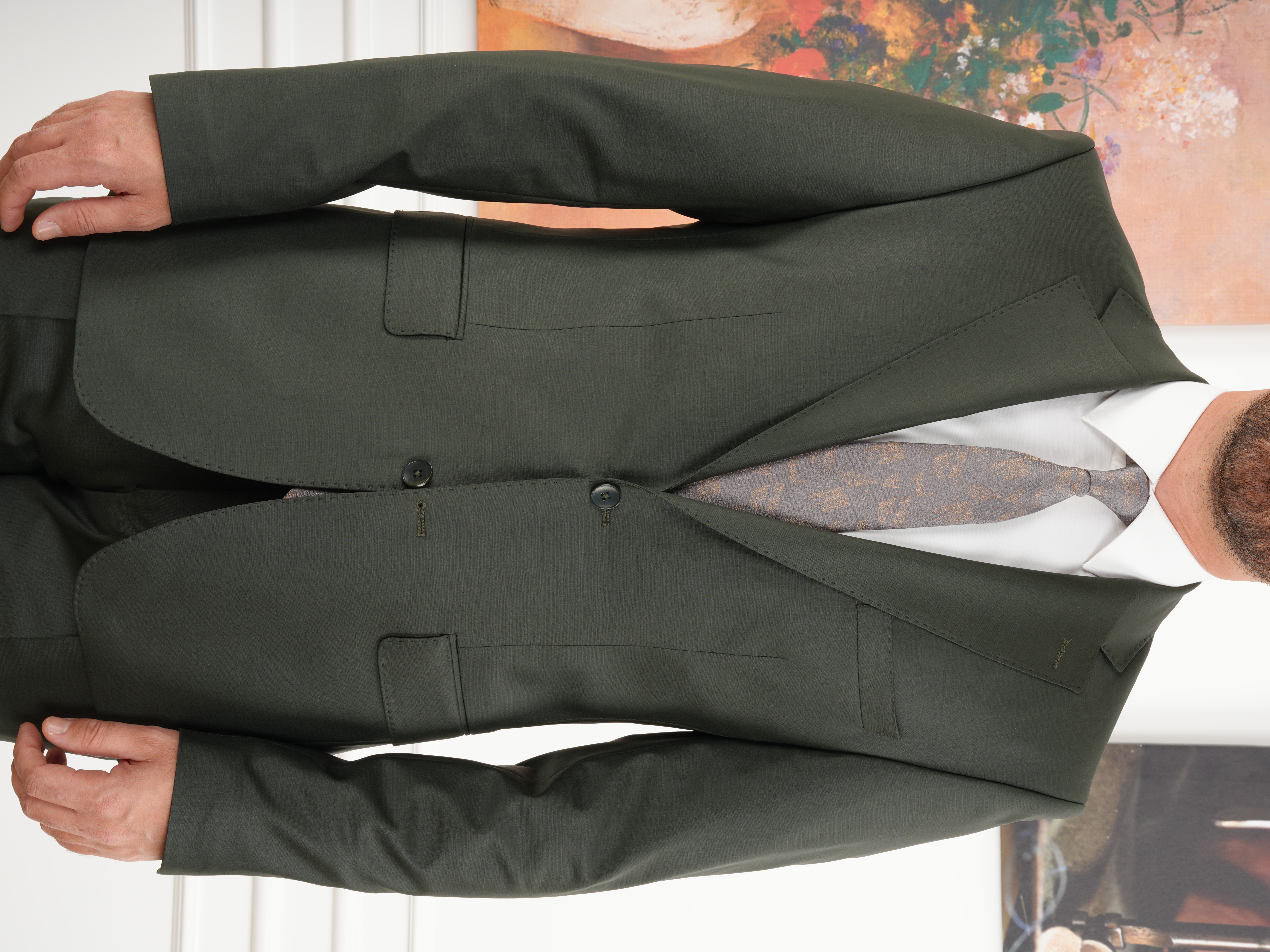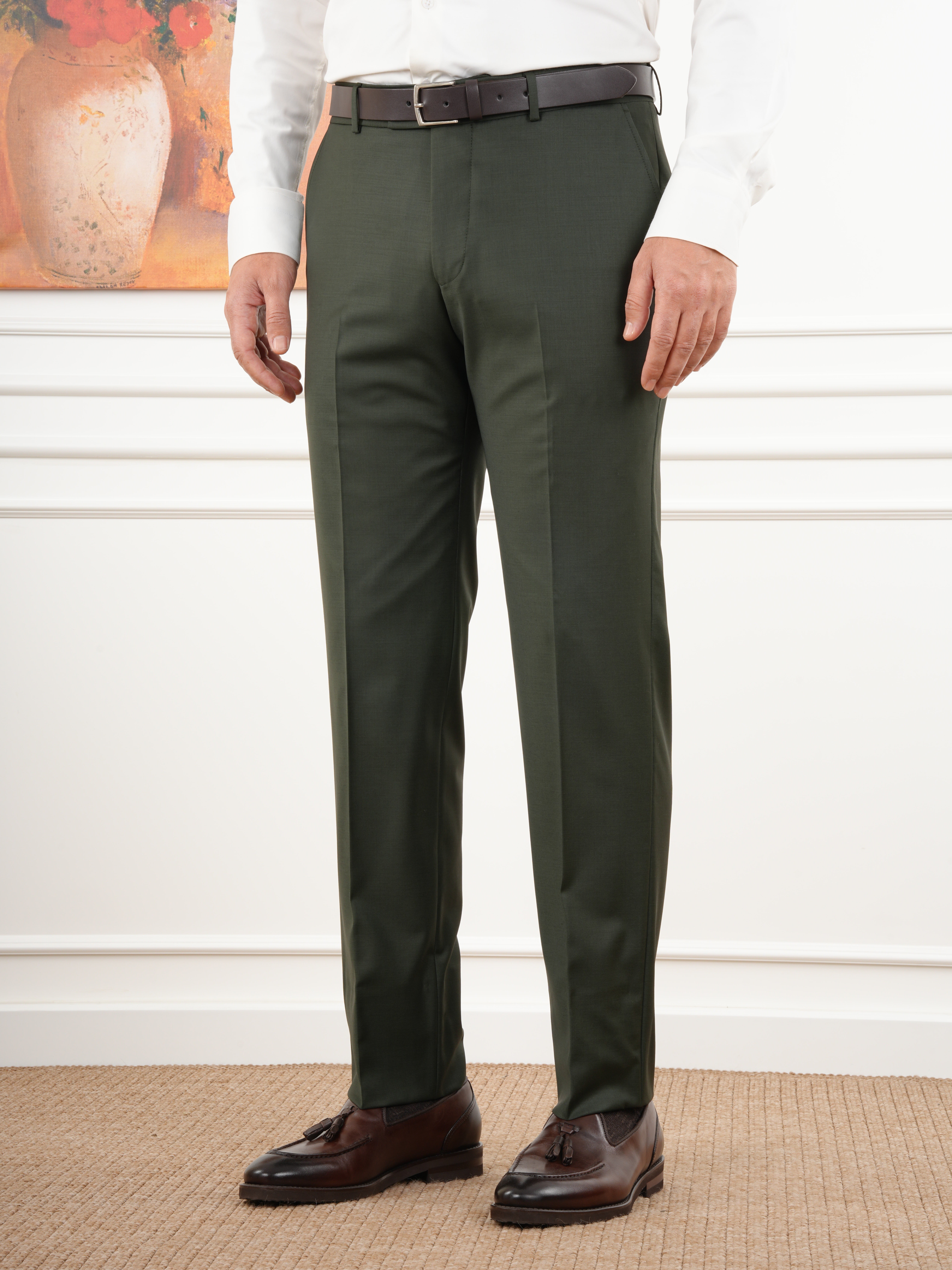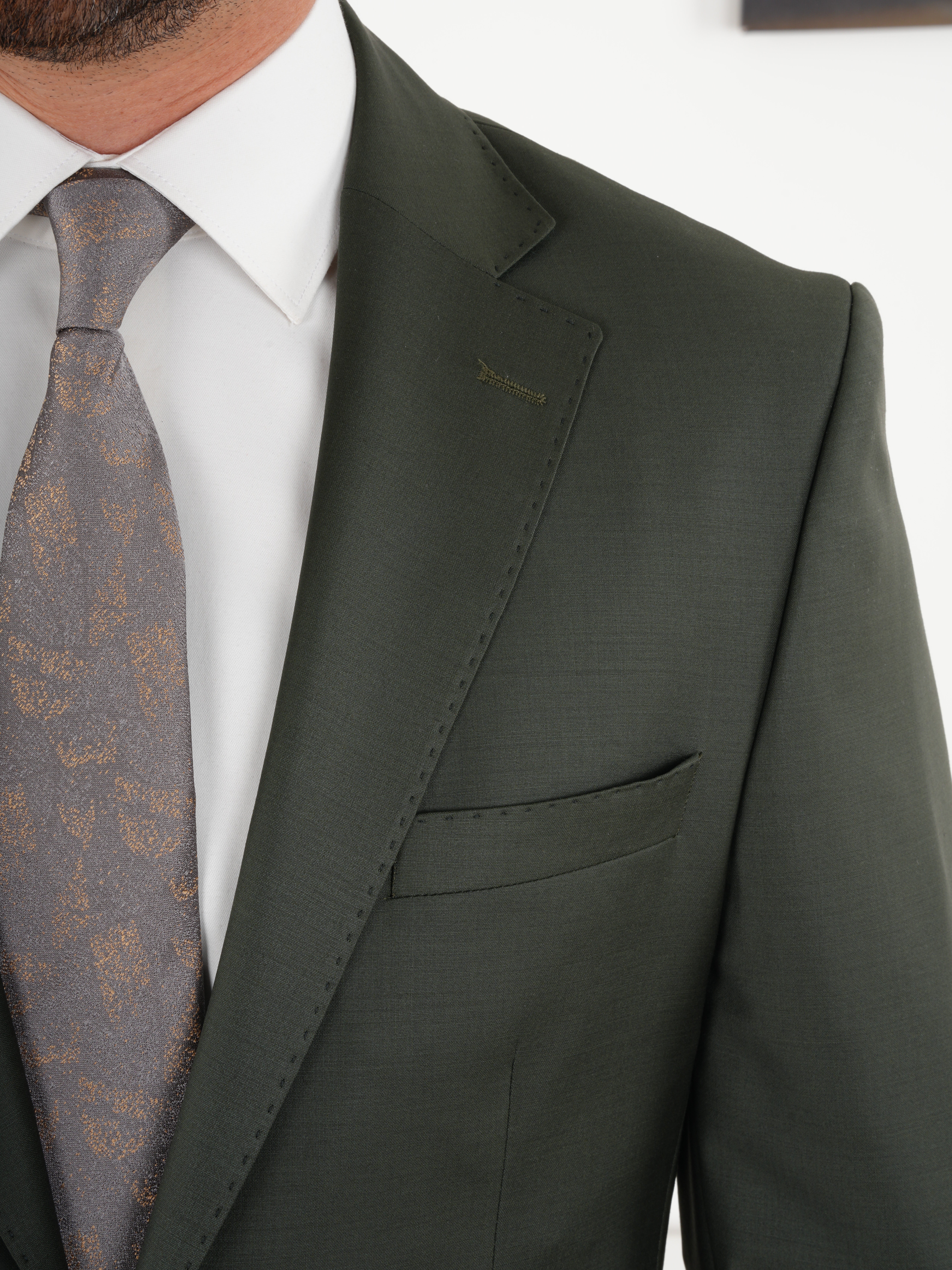 Erkek Regular İtalyan Stil Yünlü Mono Yaka Takım Elbise Ceket Pantolon - Haki (XPRZCOM8412-04)