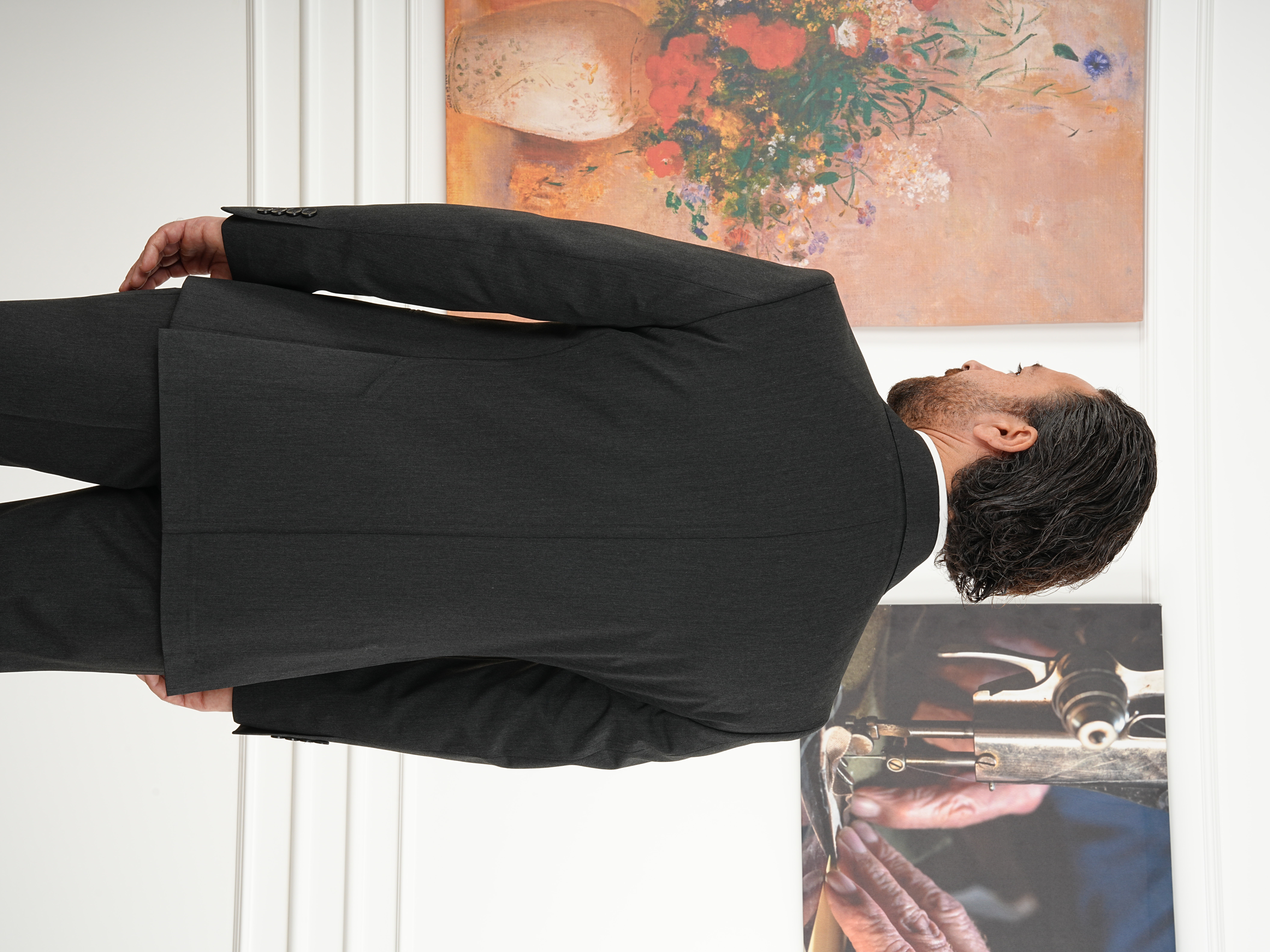 Erkek Slim Fit İtalyan Stil Kruvaze Takım Elbise Ceket Pantolon - Antrasit (XPRZCOM8378-27)