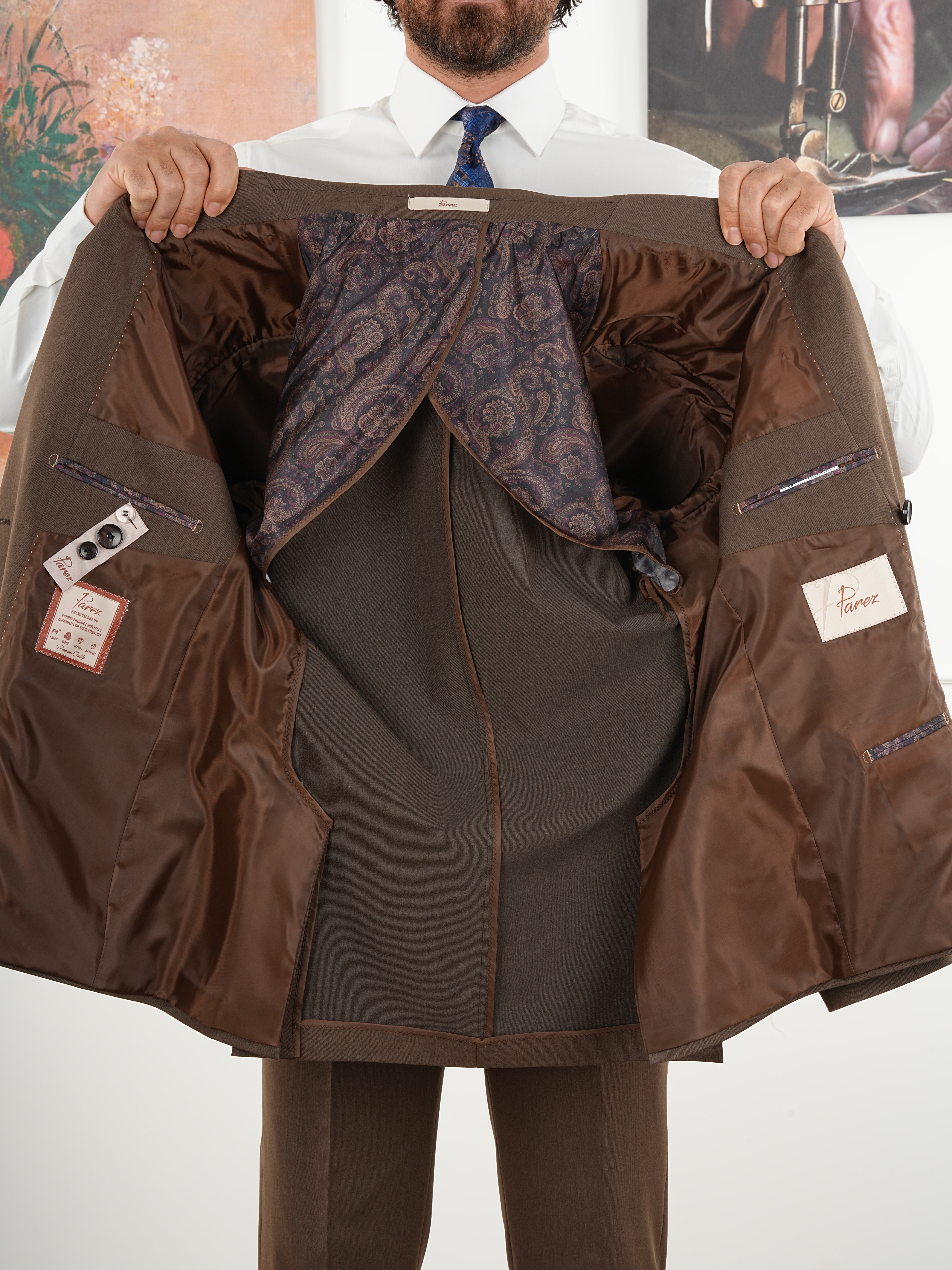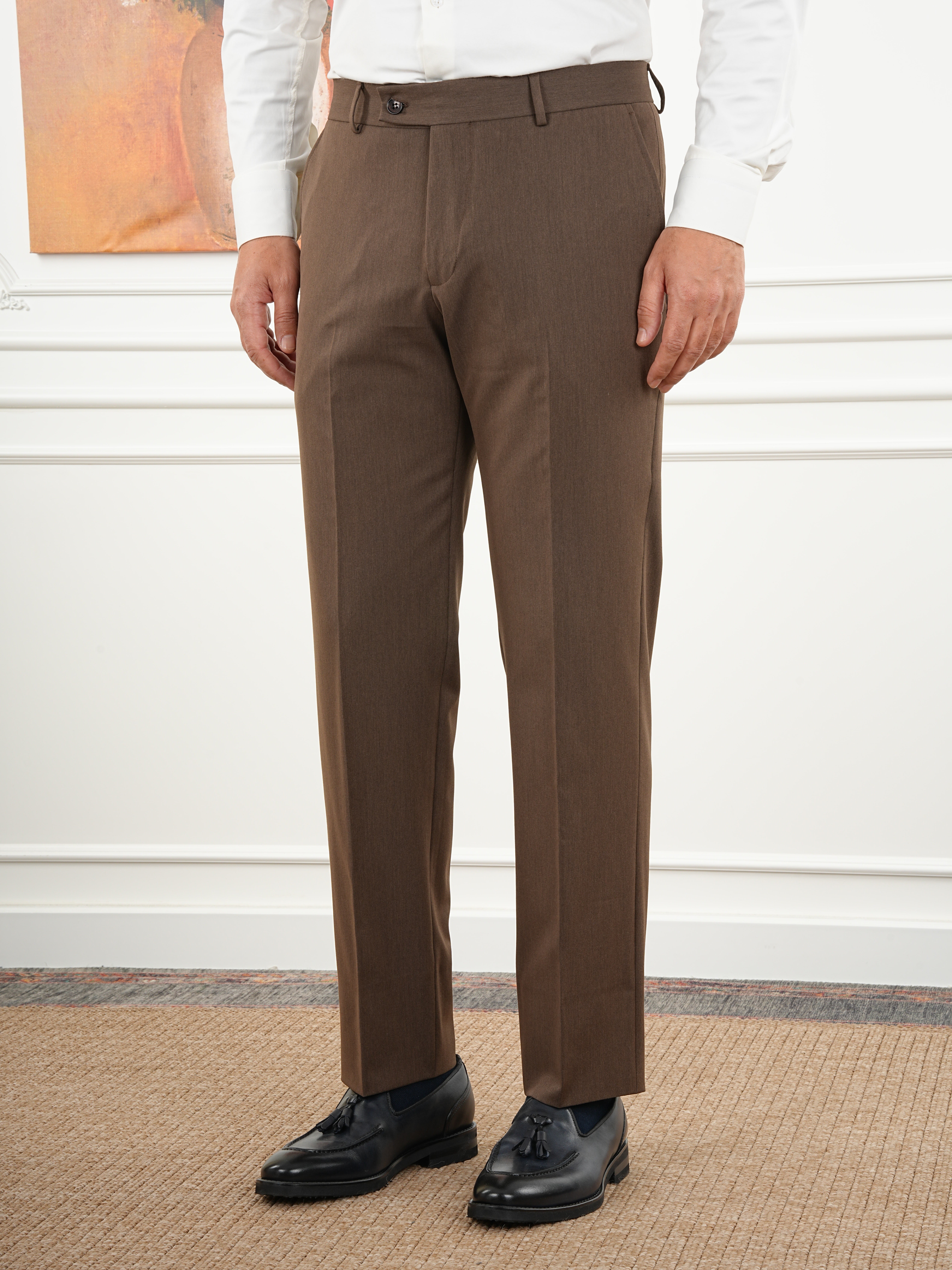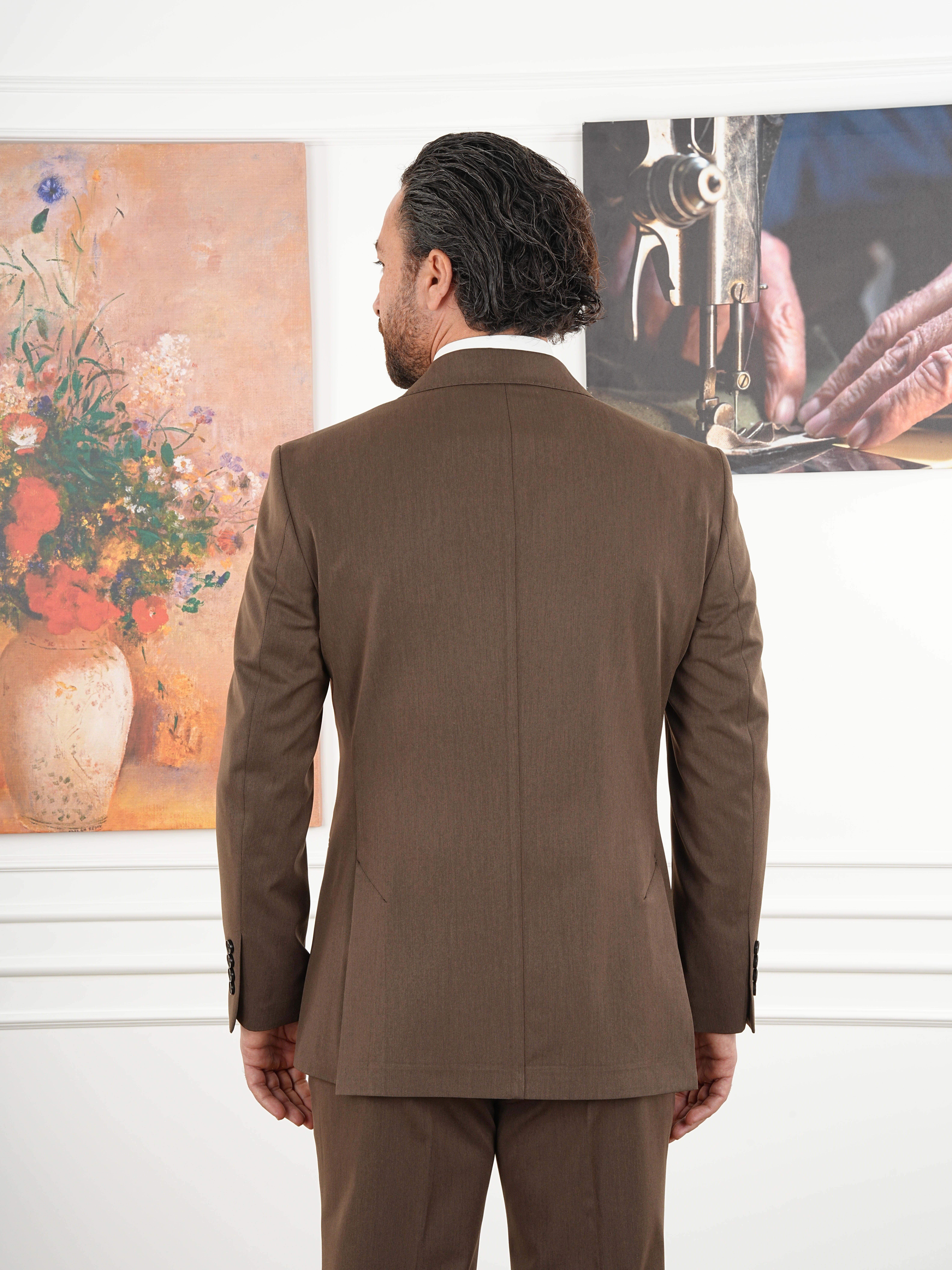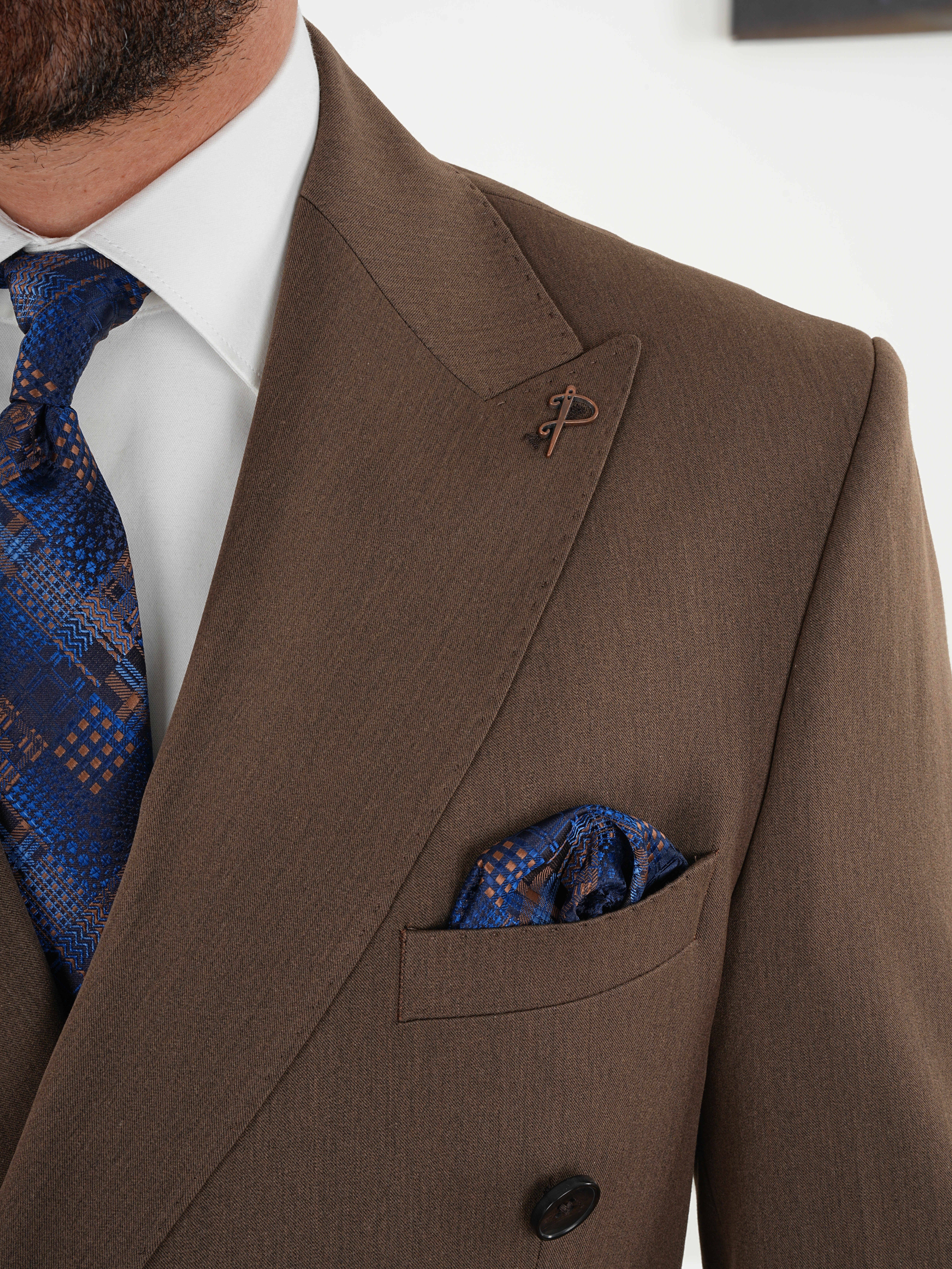 Erkek Slim Fit İtalyan Stil Kruvaze Takım Elbise Ceket Pantolon - Sütlü Kahve (XPRZCOM8378-67)