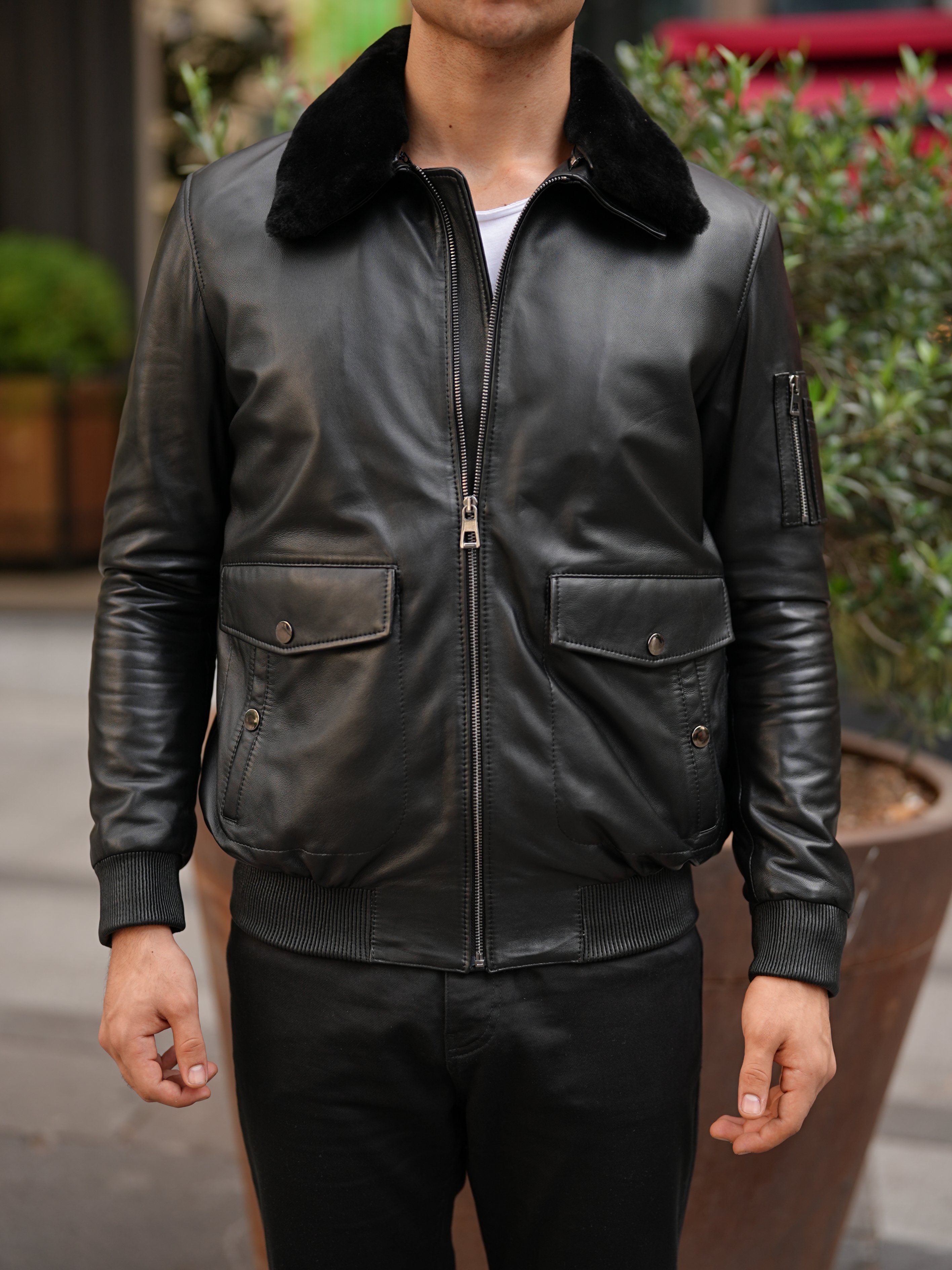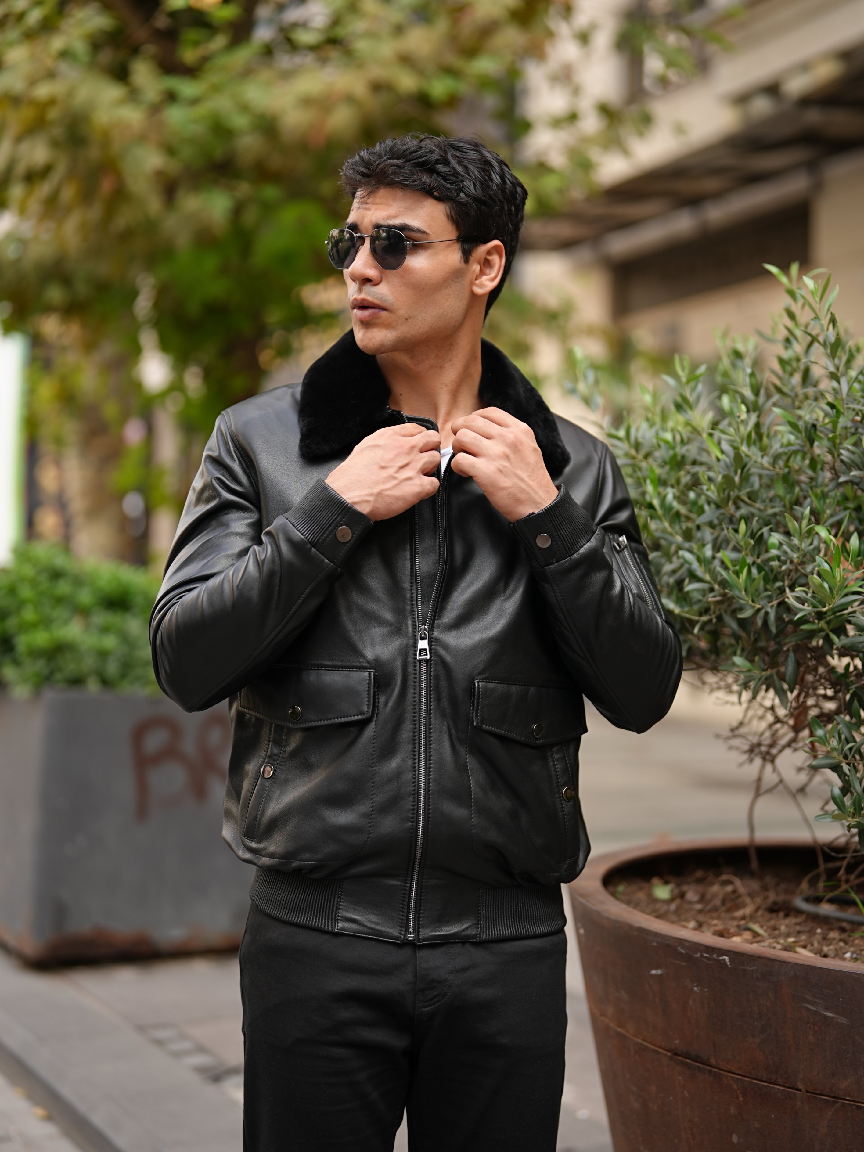 Erkek Standart Fit %100 Hakiki Kuzu Deri Mont-Siyah - Siyah (LNTD2045-001)