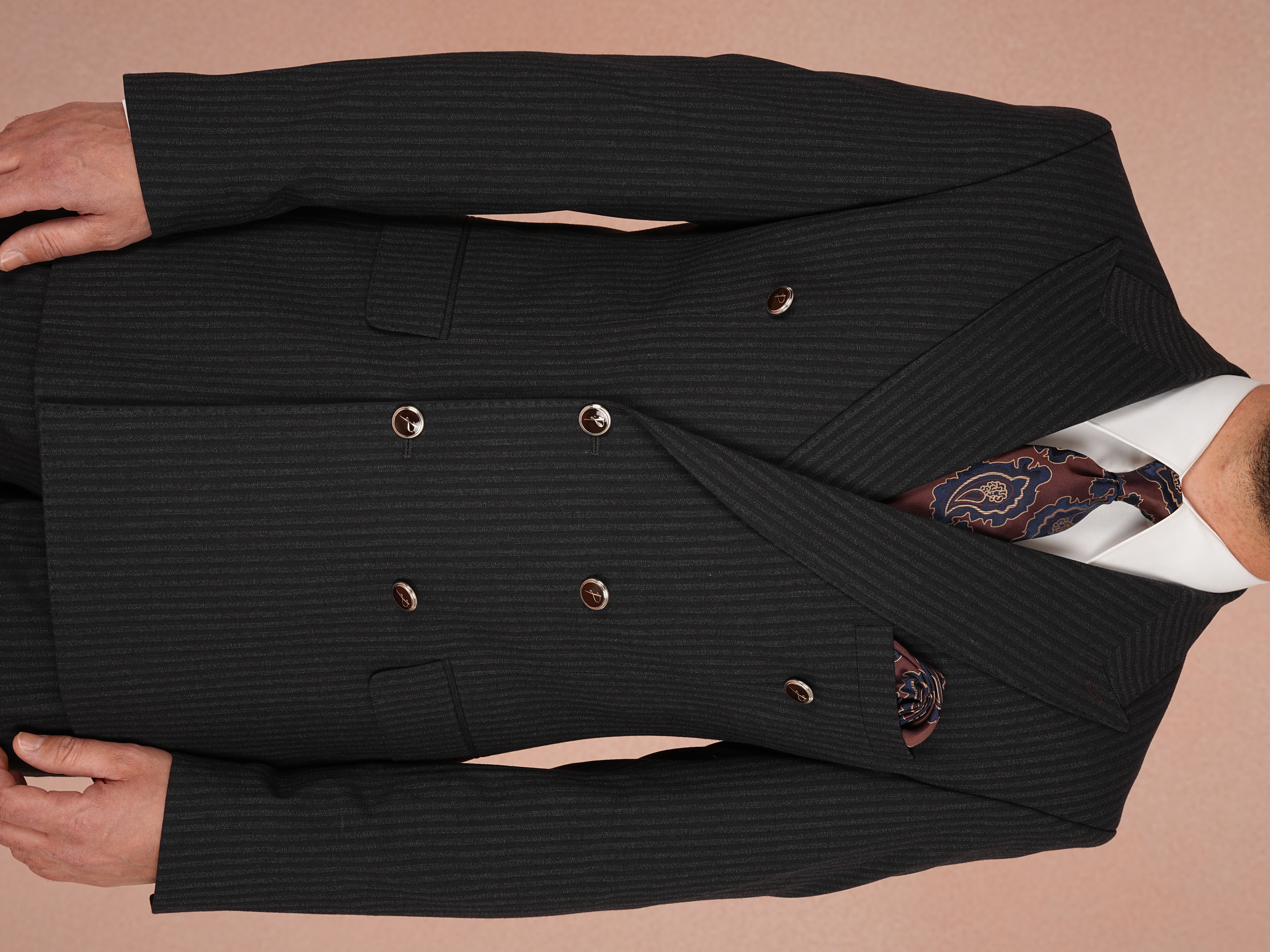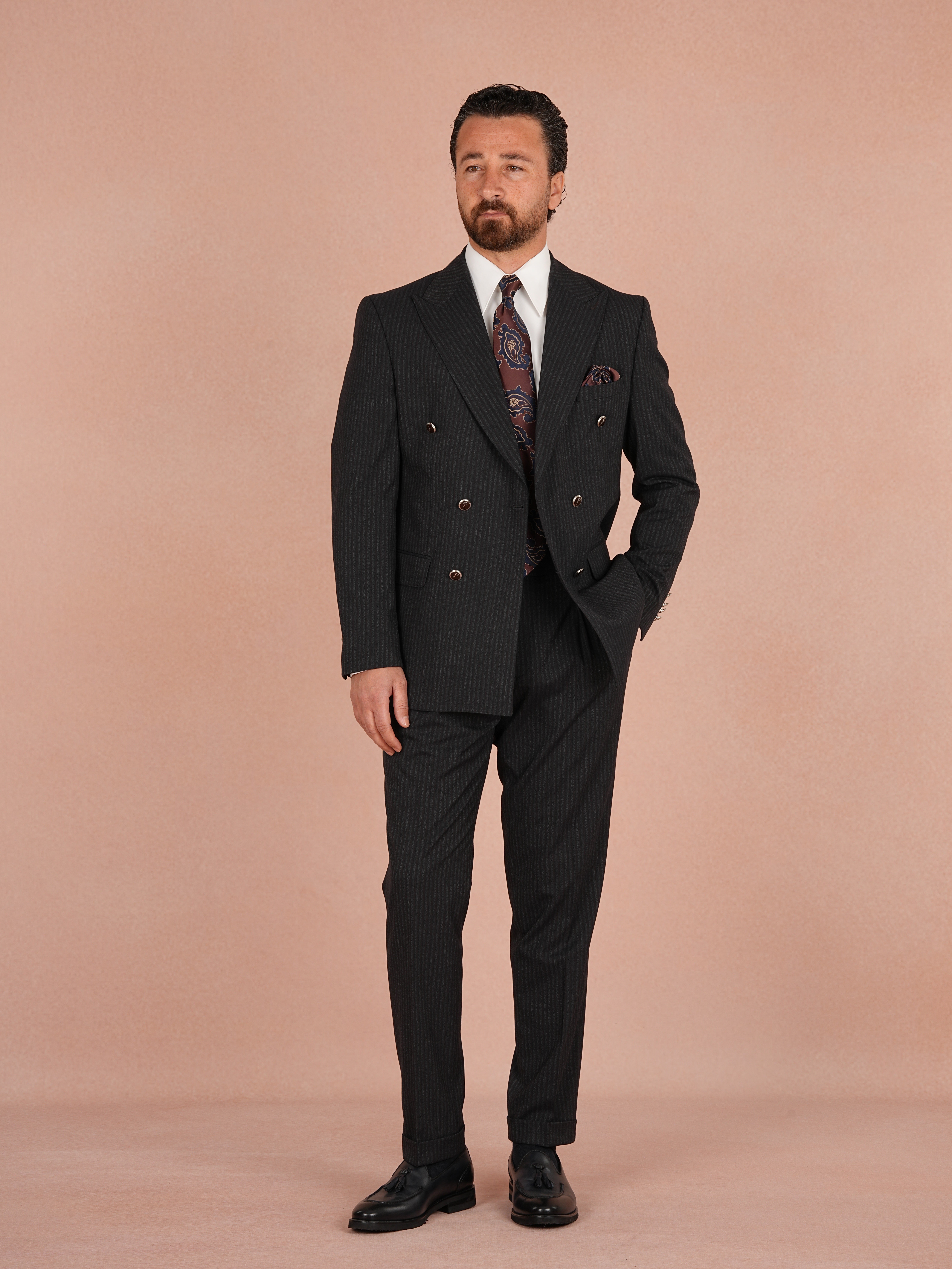 Premium Erkek Çizgili Kruvaze Takım Elbise Slim Fit İtalyan Stil Ceket Pantolon - Koyu Lacivert (XPRZCOM2007-79)