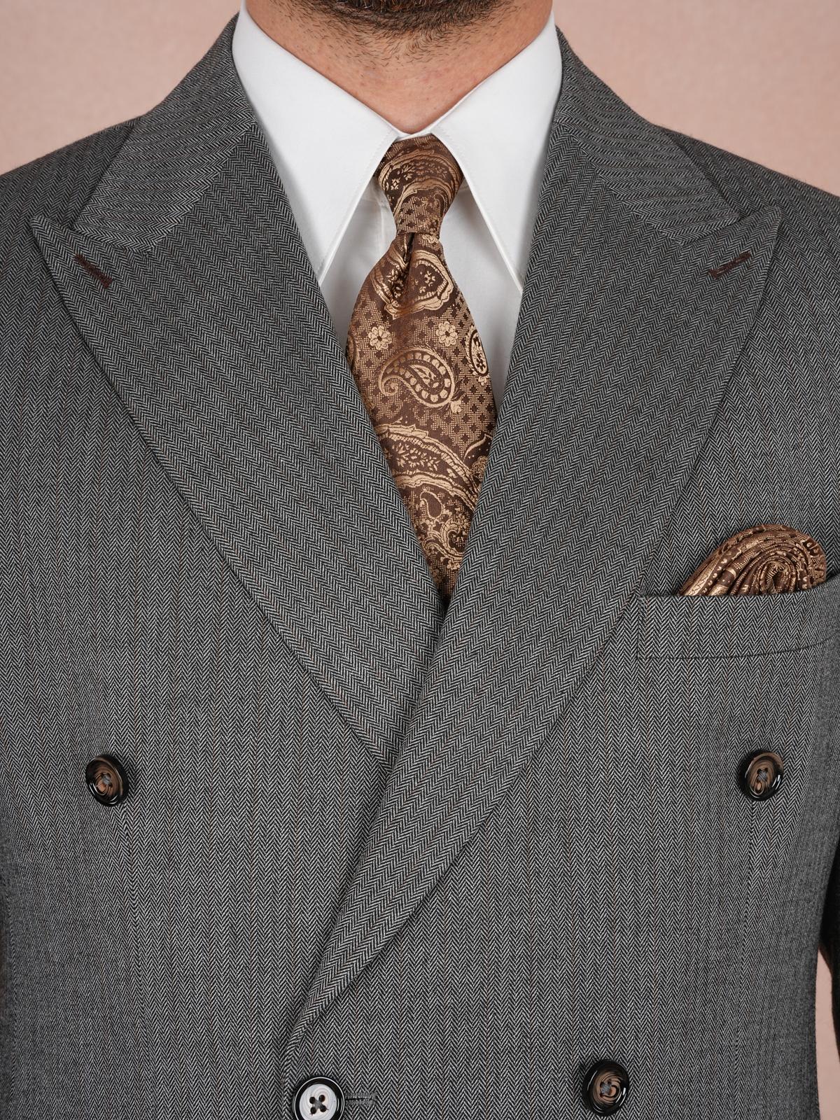 Premium Erkek Kruvaze Takım Elbise Slim Fit İtalyan Stil Punto Dikişli Ceket Pantolon - Gri (XPRZCOM2017-17)