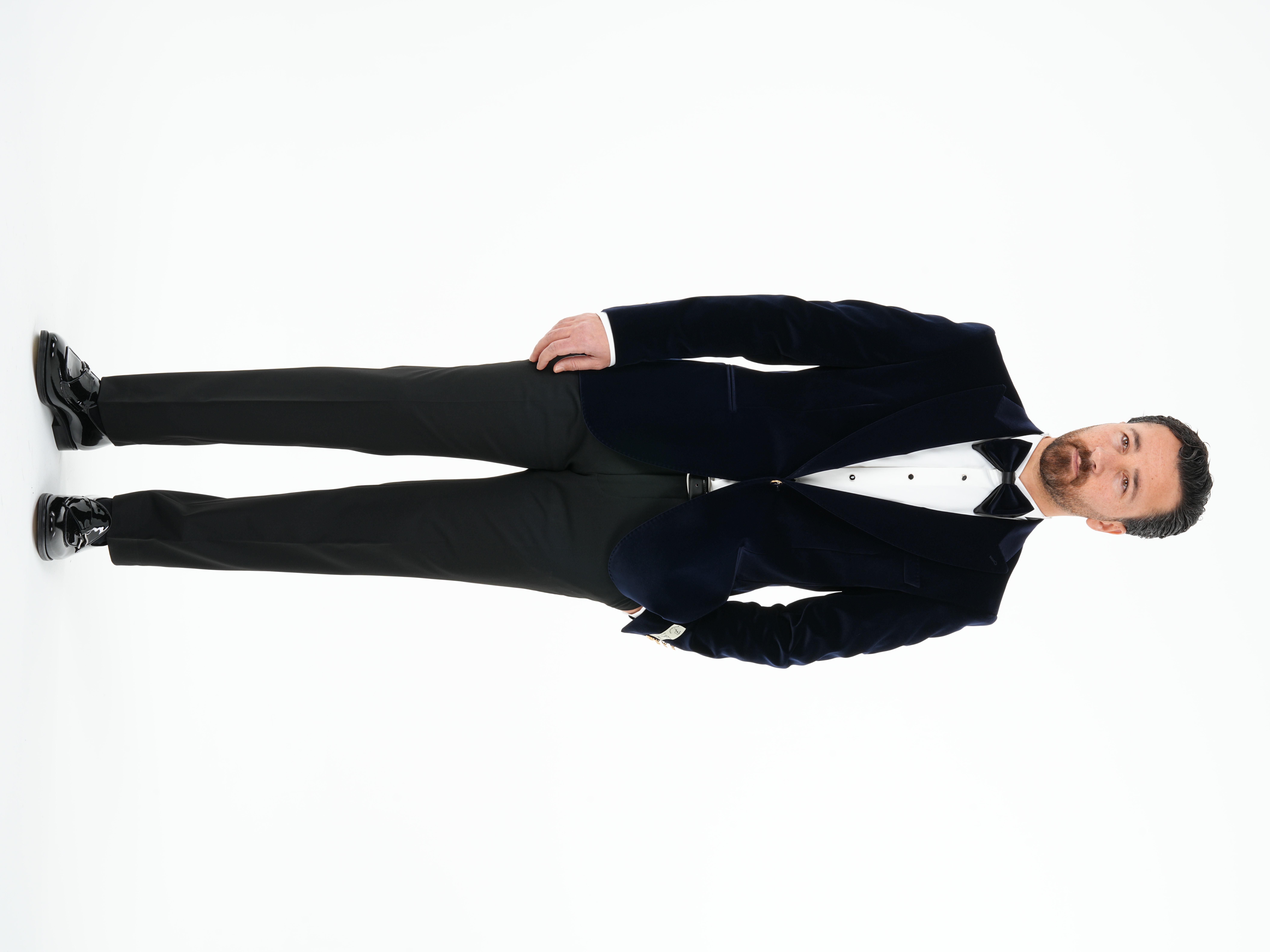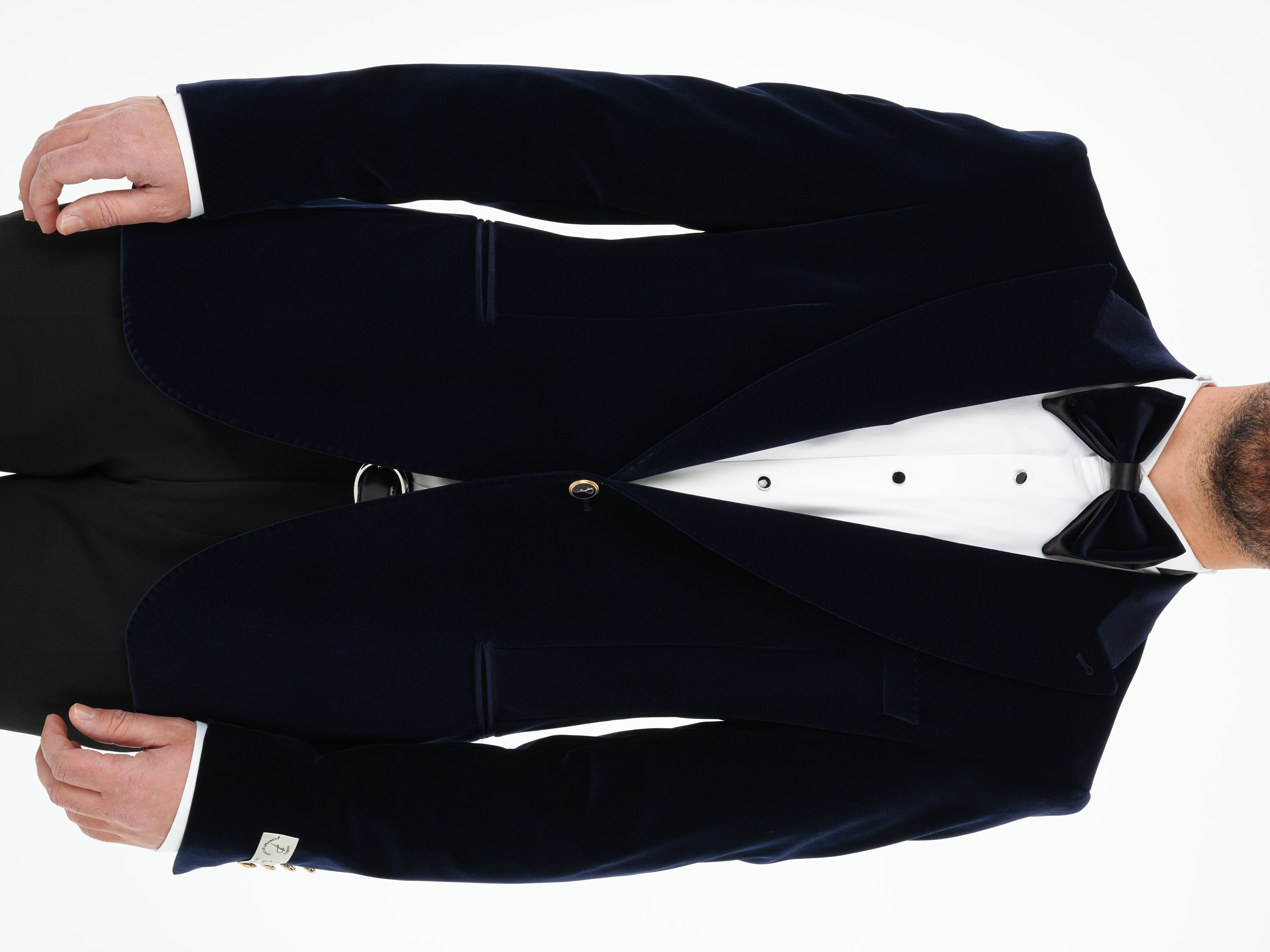 Premium Erkek Kadife Smokin Damatlık Gold Düğme Punto Dikişli Ceket Pantolon Papyon - Lacivert (XPRZCOM2450-02)
