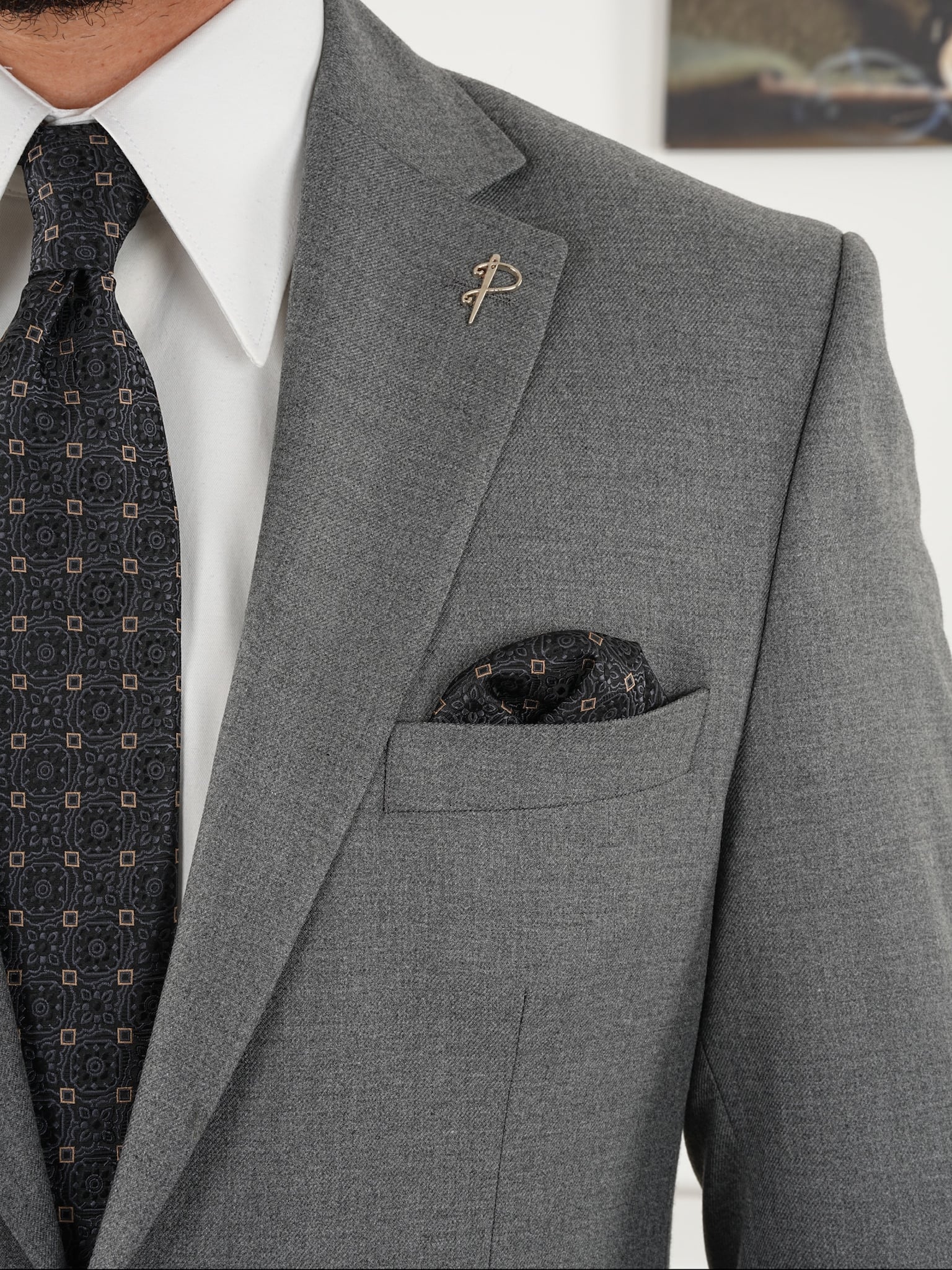 Premium Erkek Mono Yaka Takım Elbise Slim Fit İtalyan Stil Ceket Pantolon - Açık gri (XPRZCOM8411-100)