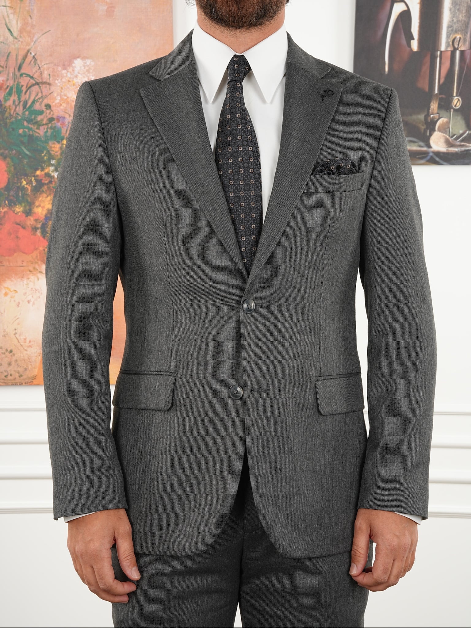 Premium Erkek Mono Yaka Takım Elbise Slim Fit İtalyan Stil Ceket Pantolon - Füme (XPRZCOM8411-18)