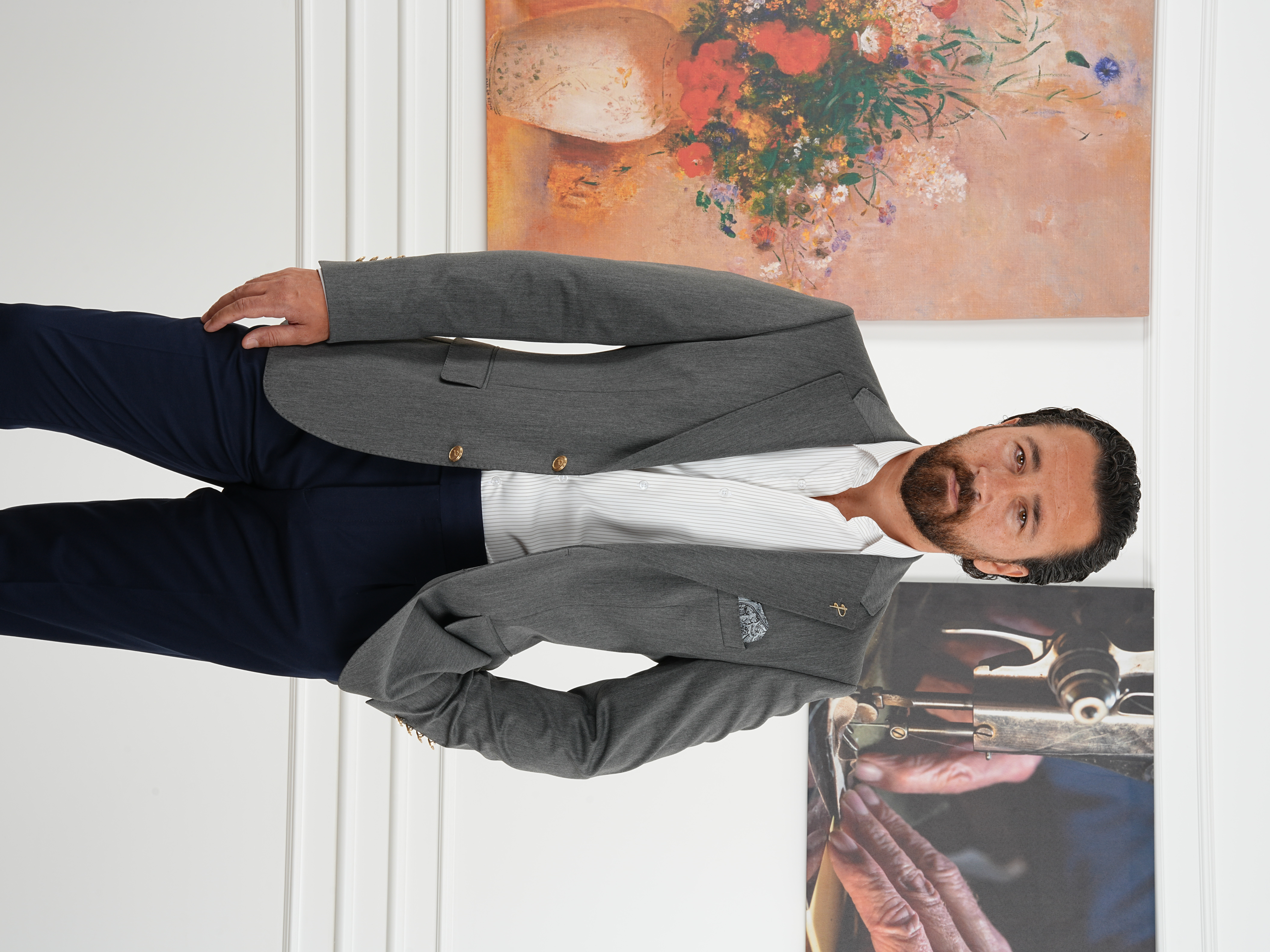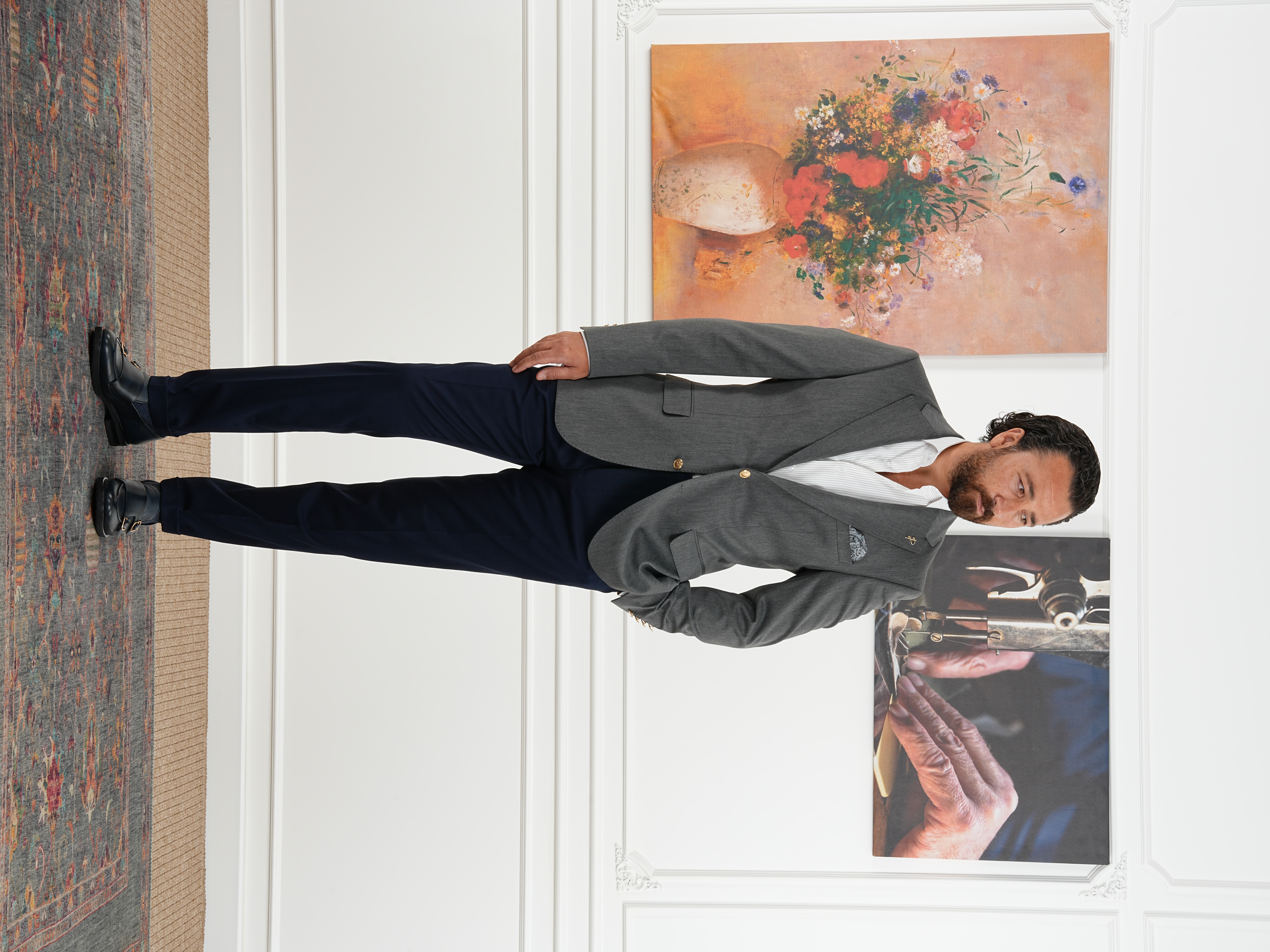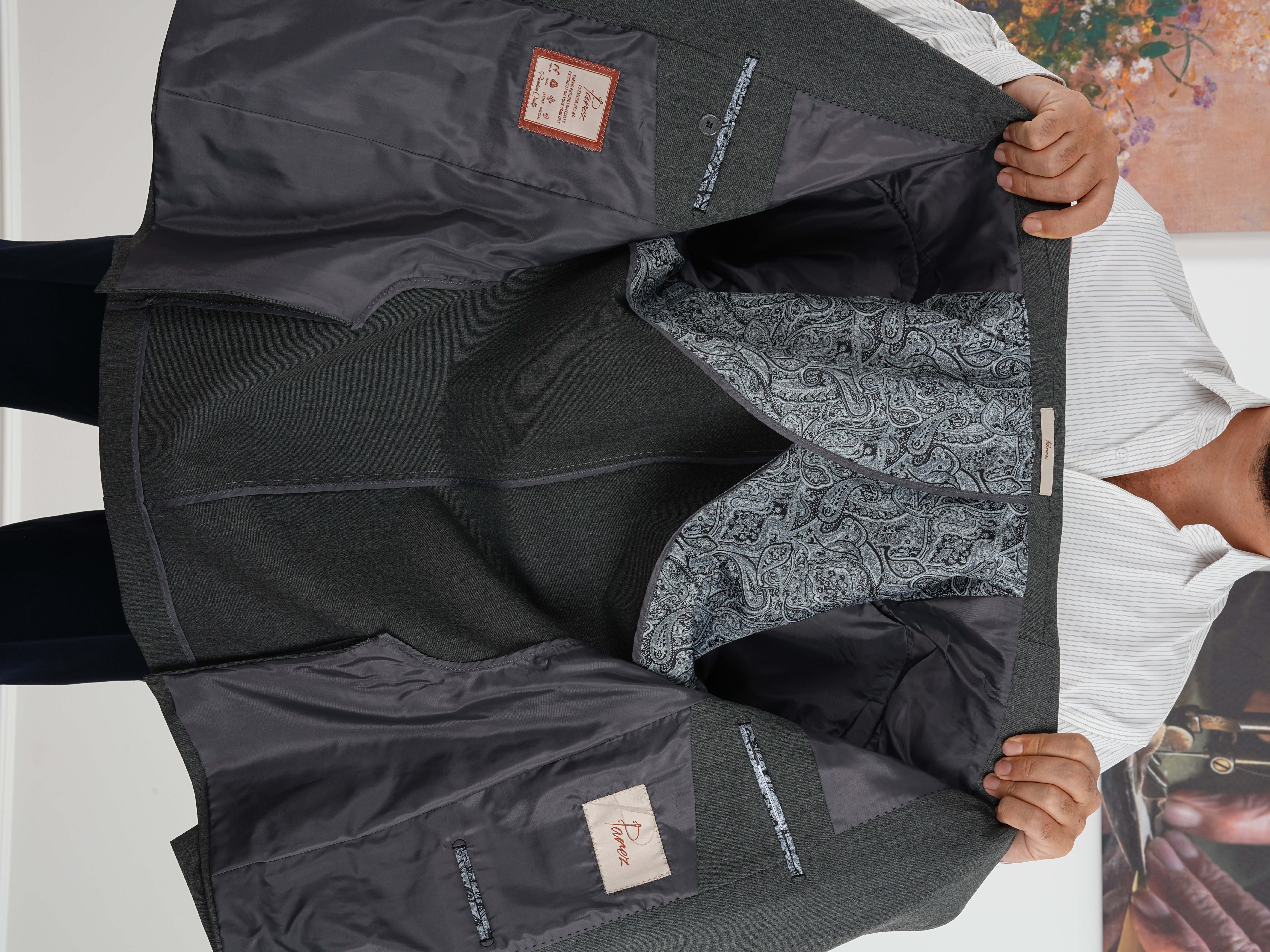 Premium İtalyan Stil Slim Fit Erkek Punto Dikişli Yarım Astarlı Ceket - Füme (XPRZCOM8332-18)